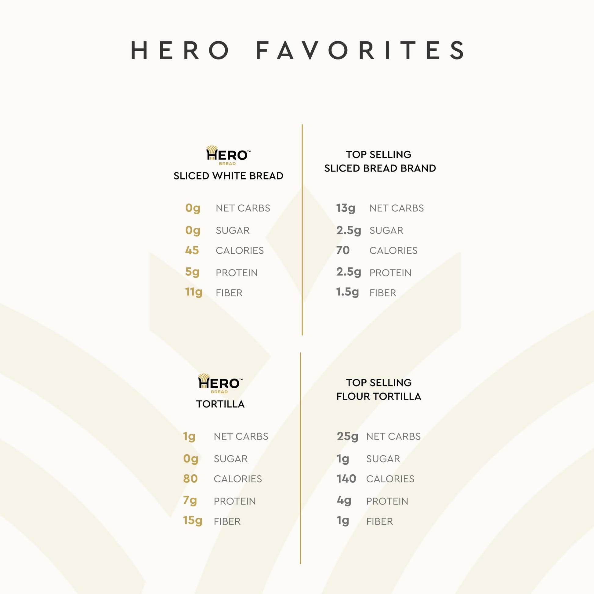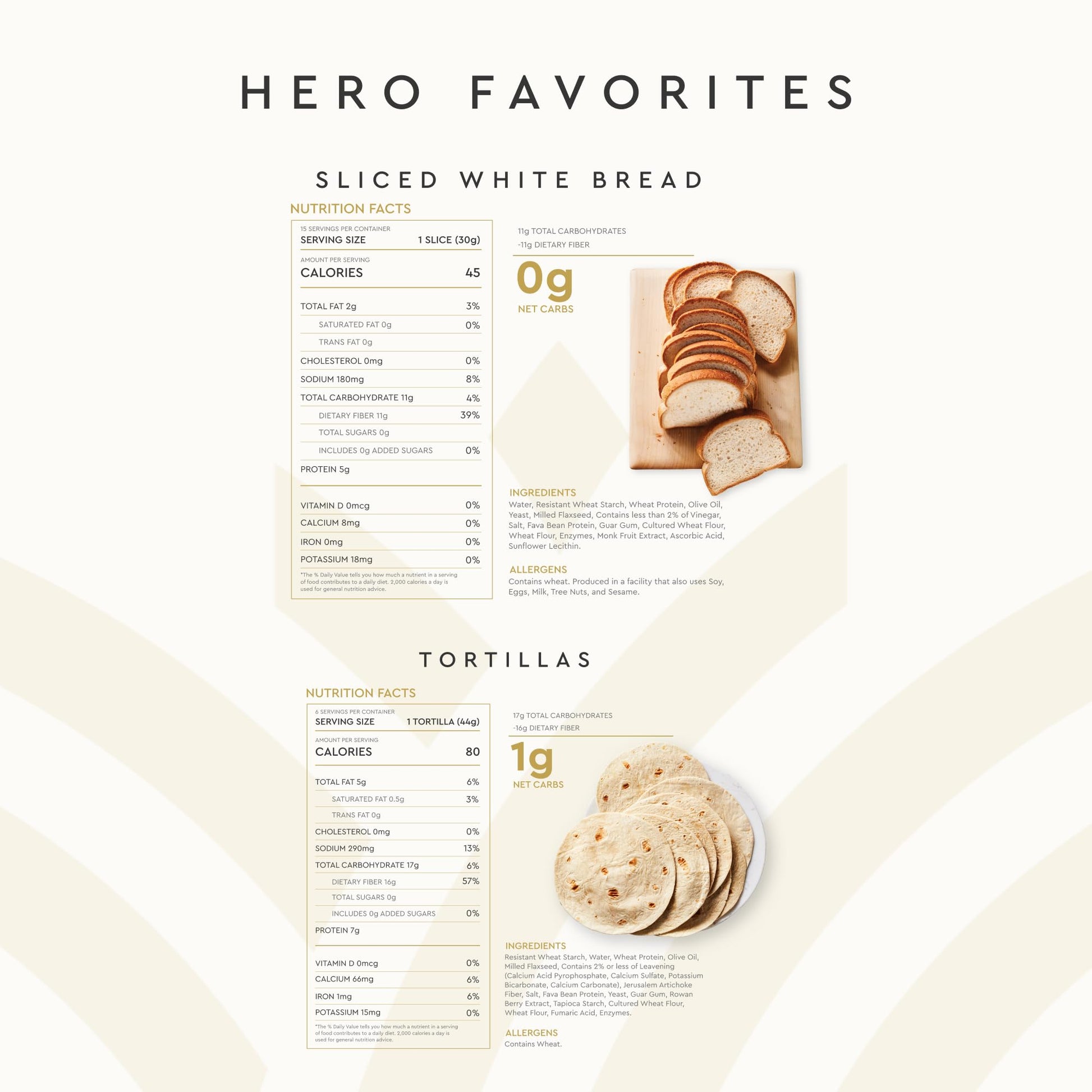 Wondering What To Stock Up On For This Weeks Grocery Run, Hosting Family During The Holidays Or Staying Fueled On Your Summer Road Trip Our Awesome Customers Love To Pair Up Hero Classic White Bread And Hero Flour Tortillas In Their Orders, And You Will, Too. This Unbelievably Tasty 0-1G Net Carb, 0G Sugar Combo Is Sure To Be A Crowd Pleaser Whether Your Crew Likes Simple Grilled Cheeses And Quesadillas Or Prefers The More Complex Flavors Of Blts And Chicken Enchiladas. The Delicious Baked Goods In This Bundle Are Now Made With Heart-Healthy Olive Oil. 0-1G Net Carbs* 0G Sugar High Fiber 5-7G Protein