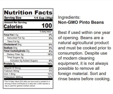 - Q: How can I use High Plains Pinto Beans in my cooking? A: These versatile beans are perfect for a variety of dishes, including refried beans, Tex-Mex meals, chili, soups, and casseroles. They have an earthy flavor and creamy texture, making them a great addition to many recipes.