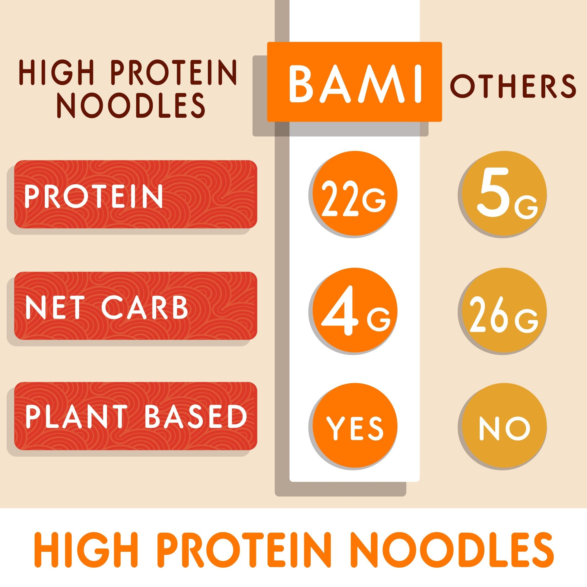 Q: How do these ramen noodles compare to traditional ramen in terms of nutrition?A: Our High Protein Ramen noodles are significantly healthier than traditional ramen. They contain 22g of protein, only 4g of net carbs, and are high in fiber, which helps keep you full for longer, unlike regular ramen that can be high in carbs and low in protein.