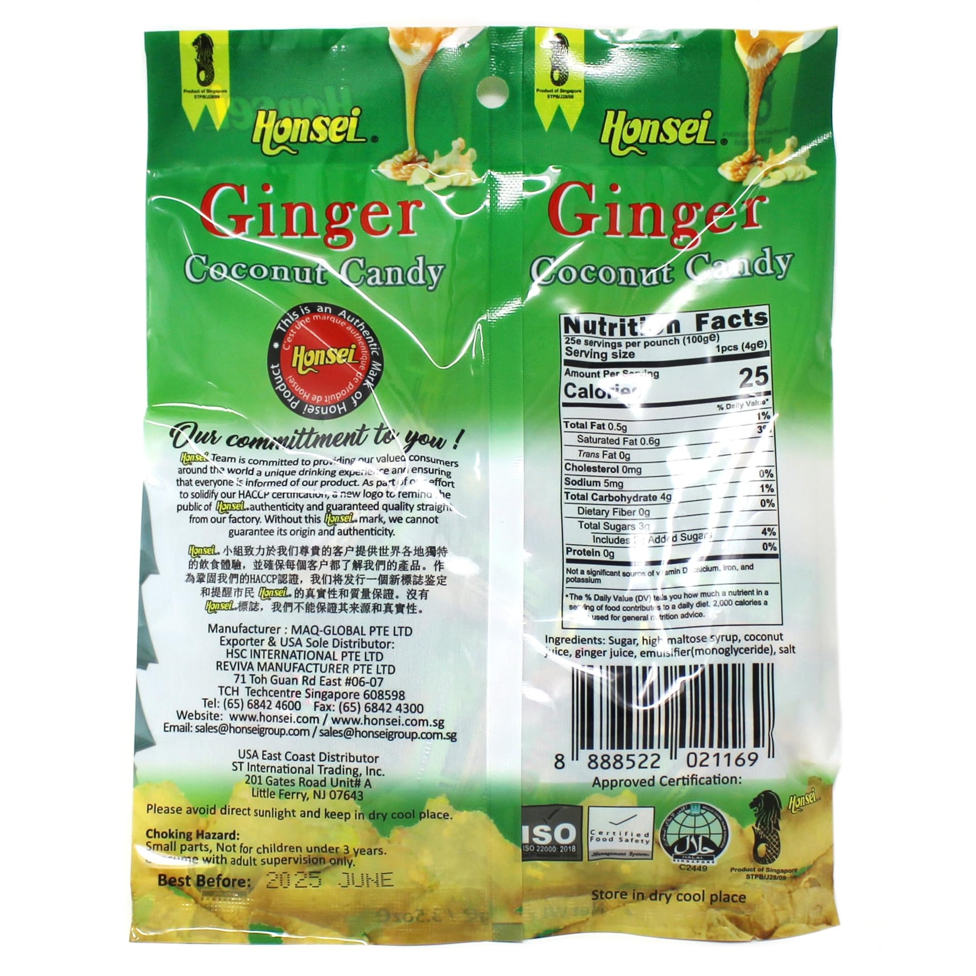 Honsei Ginger Coconut Candy - 100oz/3.5oz - Rich flavor of spicy gingers paired with creamy coconuts.