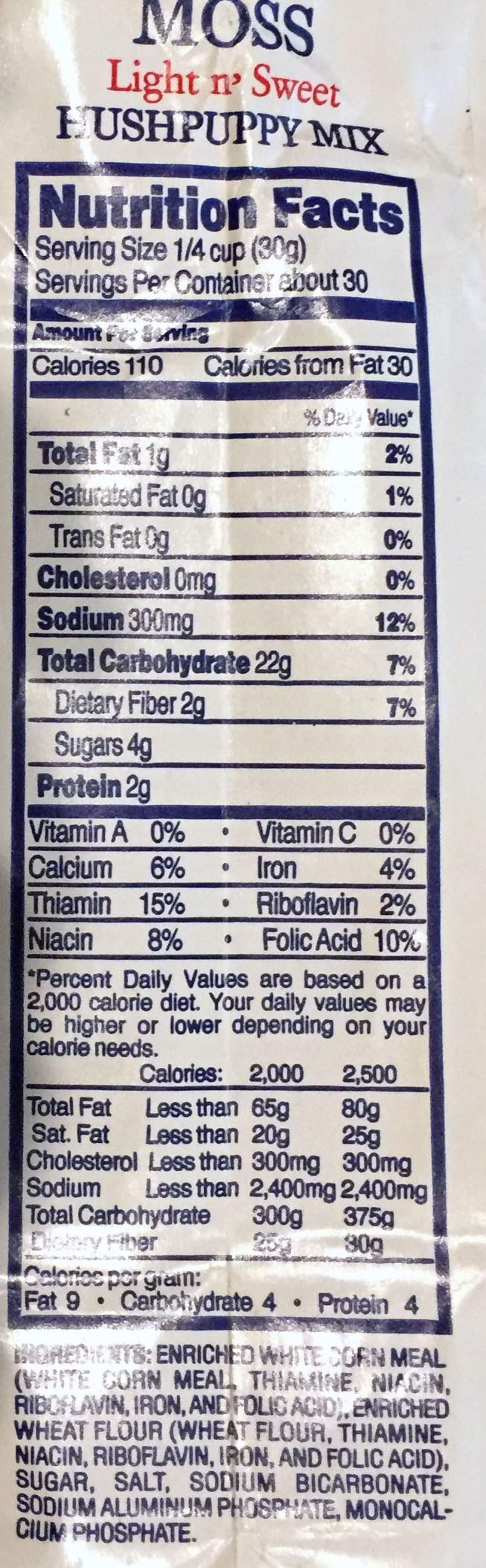 - Q: What is included in the Hush Puppy Mix and Seafood Boil package? A: The Hush Puppy Mix and Seafood Boil package includes 2 lbs of Moss Lite and Sweet Hushpuppy Mix, which only requires water to prepare. Additionally, it contains a Sassy Seafood Boil seasoning that enhances the flavor of any boiled seafood.