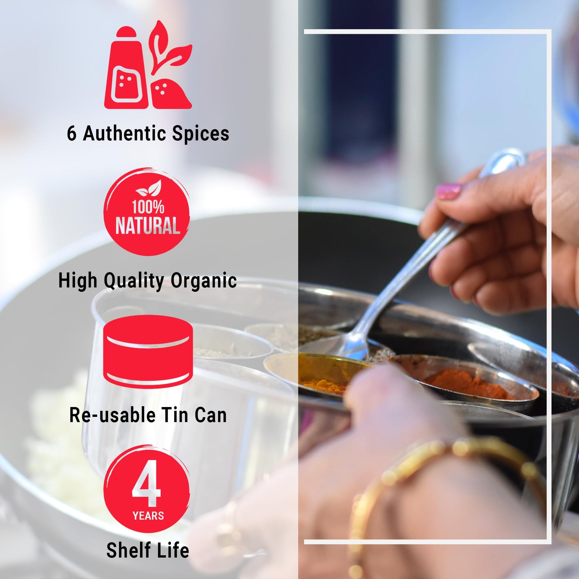 Each Spice Sample Kit Contains: - 6 Re-Usable Spice Tins Of Organic Garam Masala (Blend Of Bay Leaf, Black Peppercorns, Cumin Seeds, Coriander Seeds, Green Cardamom, Cloves And Cinnamon), Organic Turmeric Powder, Organic Cumin Seeds, Organic Curry Powder, Organic Cayenne Powder, Ground Ginger. Spice Spoon 3 Traditional Family Recipes For Chicken Vindaloo, Aloo Mutter And Vegetable Pulao