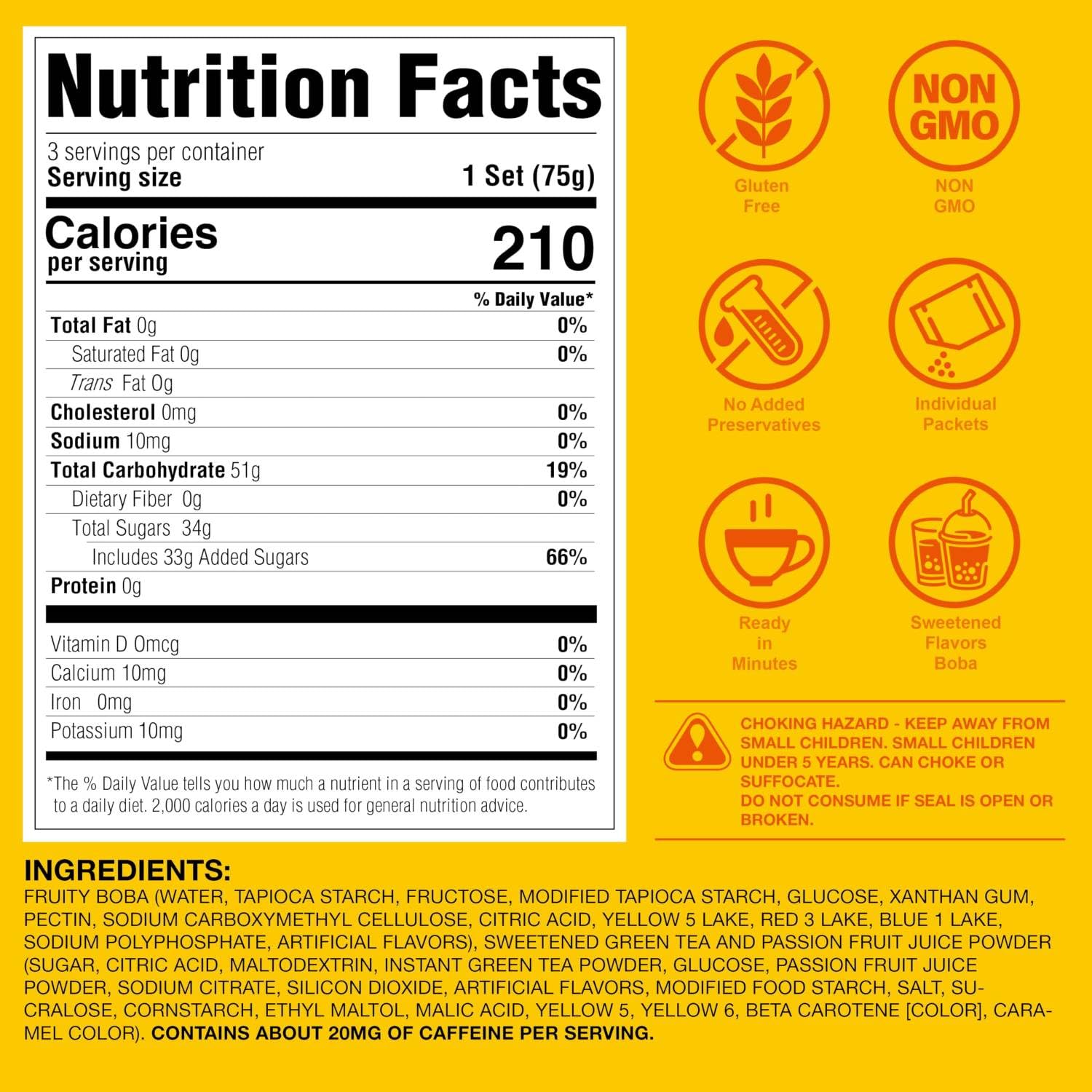 • Q: What ingredients are used in the tapioca boba pearls? A: The tapioca boba pearls in this kit are made with preservative-free ingredients and coated in fruity sugar syrup, ensuring a delicious and authentic taste. They are designed for quick preparation and provide a delightful chewy texture.