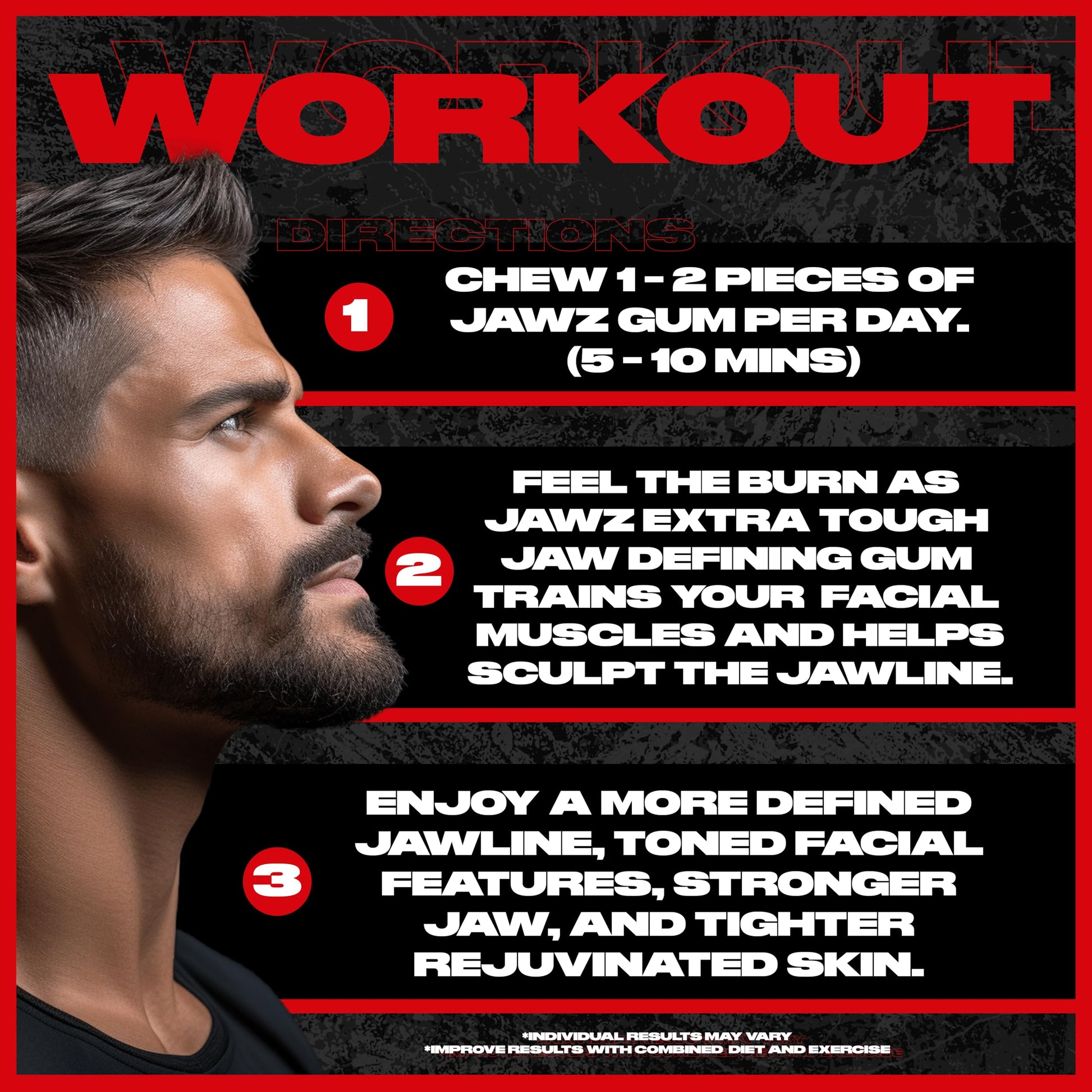 Q: How does Jawz Gum differ from regular chewing gum?A: Unlike regular gum, Jawz Gum is extra tough and provides targeted resistance, which helps strengthen jaw muscles. This makes it ideal for those looking to engage in a daily jaw workout that enhances jaw strength and definition.