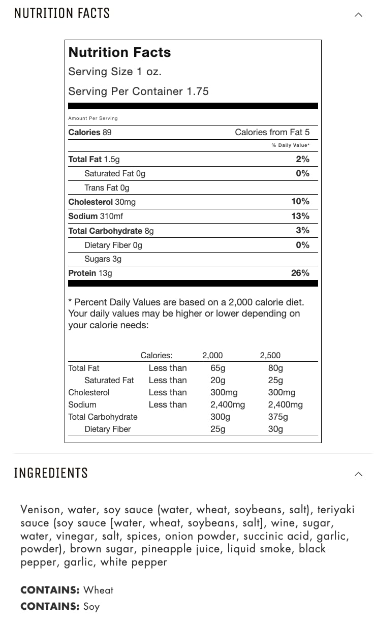 Q: How can I incorporate this jerky into my meals or snacks?A: You can enjoy the Jerky.com Original Venison Jerky as a high-protein snack on its own, or incorporate it into meals by adding it to salads, charcuterie boards, or using it as a topping for pizzas and sandwiches.