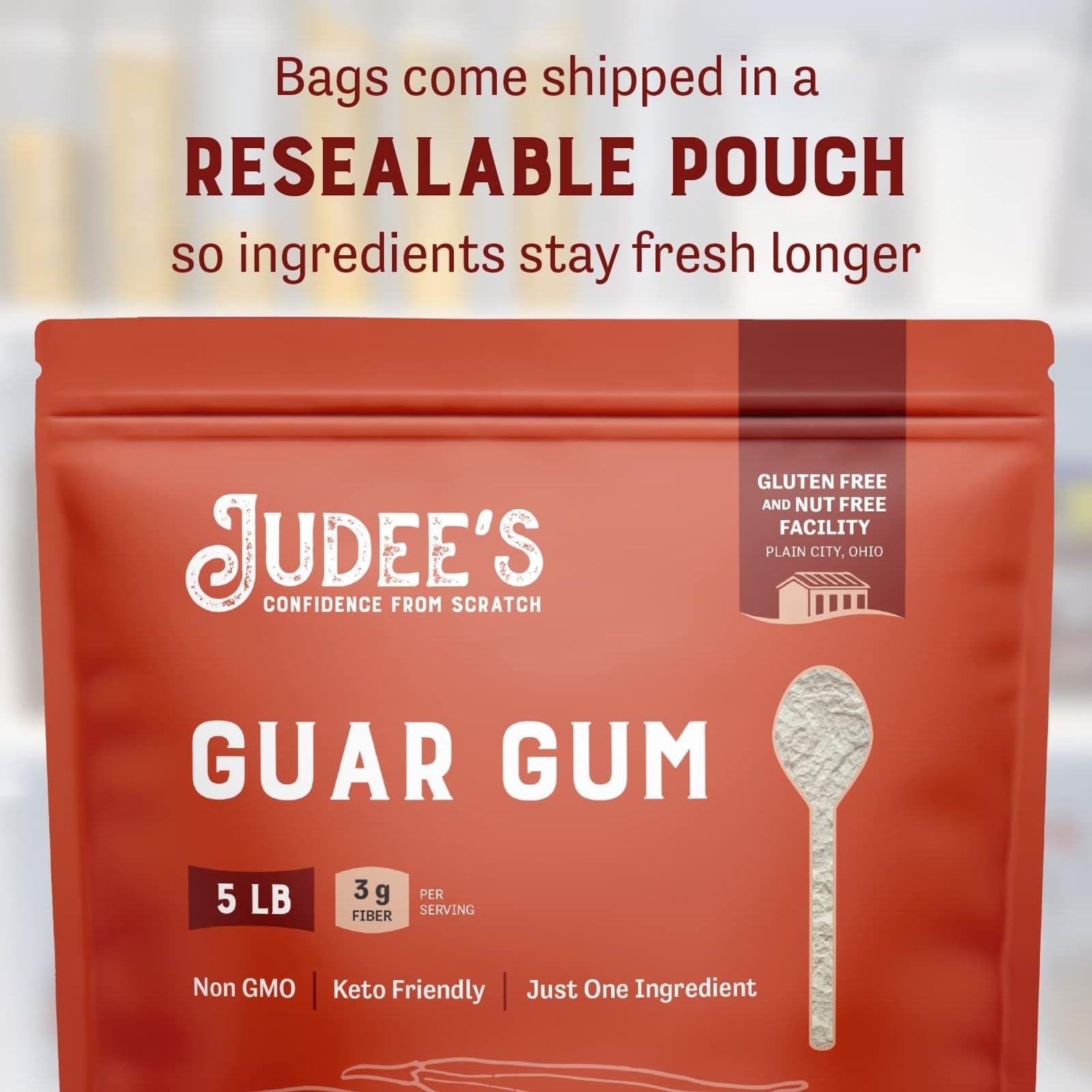 - Q: Is Judee's Guar Gum Powder gluten-free and suitable for keto diets? A: Yes, Judee's Guar Gum Powder is 100% gluten-free and is an excellent choice for keto diets. It contains no carbohydrates and offers 3 grams of dietary fiber per serving, making it a great low-carb thickening option.