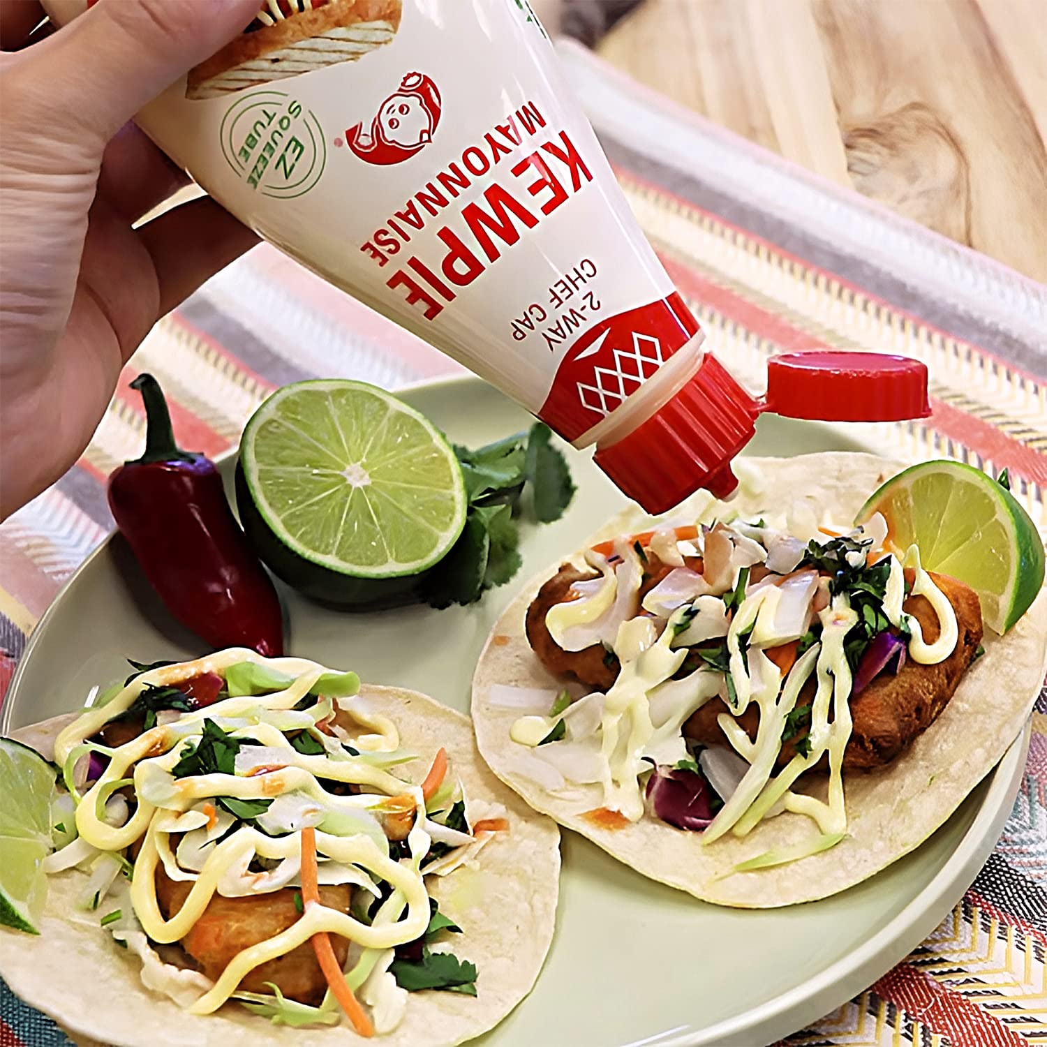 Q: What makes Kewpie mayonnaise different from regular mayonnaise?A: Kewpie mayonnaise uses only egg yolks instead of whole eggs, resulting in a creamier texture and richer flavor. This unique formulation gives it a distinct savory taste and a custardy consistency that sets it apart from traditional American mayonnaise.