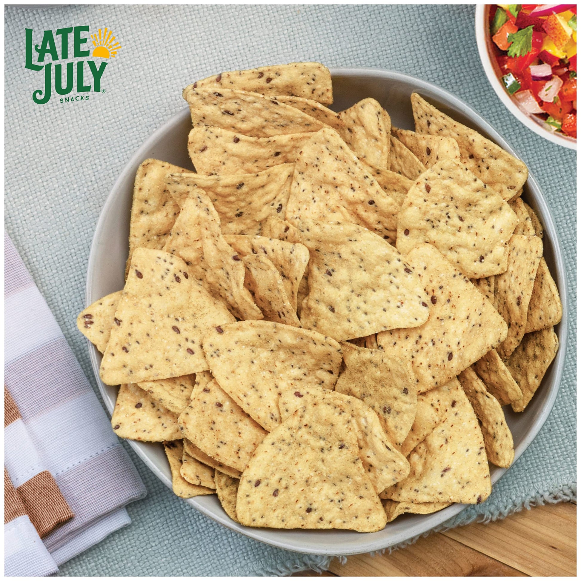 Q: What makes Late July Tortilla Chips different from other tortilla chips?A: Late July Tortilla Chips stand out due to their use of a blend of grains and seeds, combined with high-quality organic ingredients. They offer a unique flavor profile while being healthy, gluten-free, and non-GMO.
