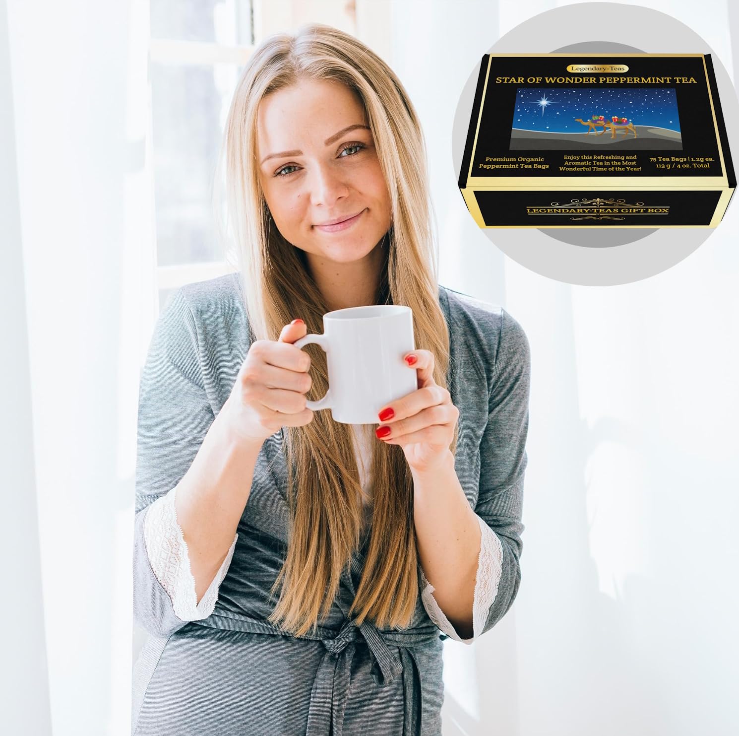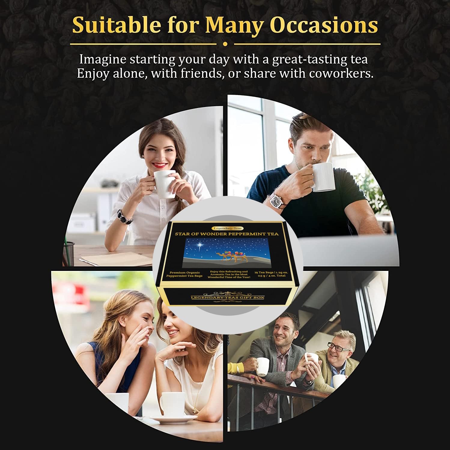 Legendary-Teas Star Of Wonder Peppermint Tea - 75 Pyramid Tea Bags In A Black And Gold Gift Box - Pure Organic Peppermint Tea Is A Traditional Beverage Surrounded By Legends.For Centuries, The Ancient Egyptians, Greeks, And Romans All Used Peppermint. Peppermint Tea Has A Variety Of Health Benefits, Many Of Which Are Backed By Modern Scientific Research. It Is Still In Use Today For Similar Beliefs. A Generous Supply Of This Exquisite Tea Can Be Found In Our Specially Designed Gift Pouch. Thus, If Youre Looking For Premium Herbal Peppermint Tea For Personal Consumption Or Sharing With Loved Ones At Christmas, Youve Come To The Right Place. The Legendary-Teas Star Of Wonder Peppermint Tea In A 75 Pack Gift Box From Actionx Is As Amazing As The Benefits Of The Tea. This Gift Pouch Has An Elegant Black And Gold Motif To Match The Fine Traditional Tea Contained Within. It'S Decorated With Beautiful Holiday Artwork And Features A Flyer Describing The Benefits, Making It An Interesting Present For Tea Enthusiasts And An Interesting Display Pouch For The 75 Pyramid Teabags It Contains. To Make Our Pure Peppermint Tea Luxurious, We Follow A Traditional Recipie To Bring Out Their Natural Aroma And Unique Taste. Our Tea Leaves With Amazing Minty Notes And Aroma Are Packed In Non-Woven, Plant-Based Teabags So You Can Put Them In The Compost Bin After Infusion. Each Teabag Contains 1.5G Of Our Tea Leaves, Enough To Yield Two Cups. With Each Sip, Youll Get Your Daily Dose Of Vitamin C, Antioxidants, And Anti-Inflammatories, Which Can Help You Relax And Concentrate More. To Maintain Freshness, Our Teabags Are Vacuum-Sealed In Foil Pouches. More To Know About Our Natural Tea Box: - Lasts For 10 Years When Unopened; 2 Years Once Opened - Non-Gmo Tea Manufactured According To Industry Standards For Quality - Reseal The Pouches And Keep Away From Strong Scents Treat Yourself!