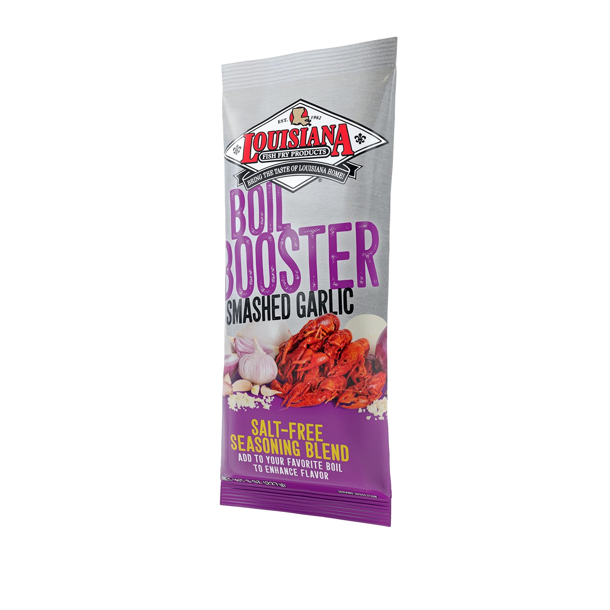 - Q: What is Louisiana Fish Fry Products Boil Booster Smashed Garlic Seasoning Blend used for? A: The Louisiana Fish Fry Products Boil Booster Smashed Garlic Seasoning Blend is designed to enhance the flavor of your seafood boils, soups, and other dishes, providing a robust garlic taste without the added salt.