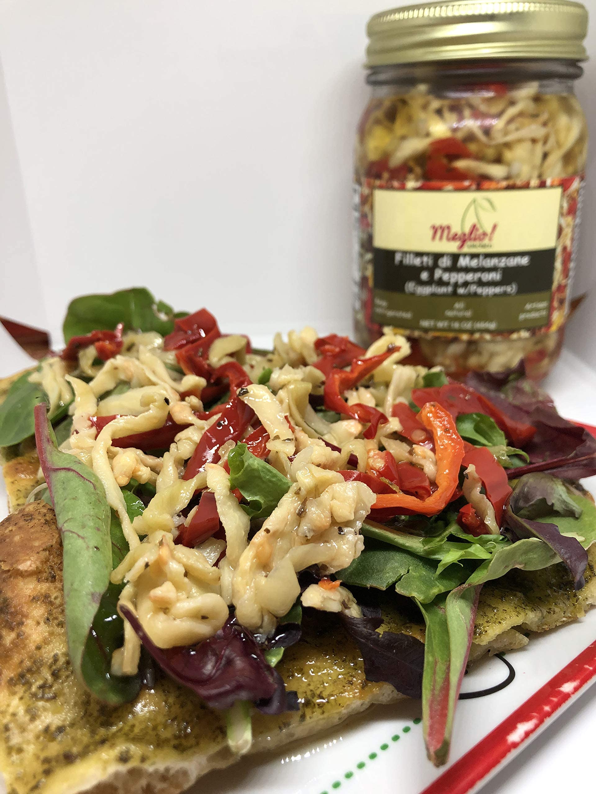 Q: What makes Meglio Kitchen products stand out?A: Meglio Kitchen products, including Melanzane e Peperoni, are crafted from fresh, artisan ingredients and are free from preservatives, artificial colors, and flavors. Family-owned and operated, they offer authentic Italian recipes sourced locally from Florida.