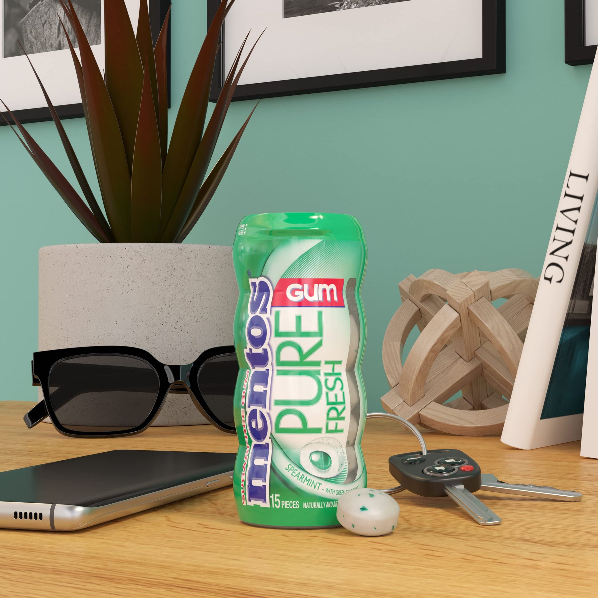 • Q: What flavors are available for Mentos Pure Fresh Gum? A: Mentos Pure Fresh Gum comes in various flavors, including Spearmint, Cinnamon, Bubble Fresh, Fresh Mint, Sweet Mint, and Wintergreen.