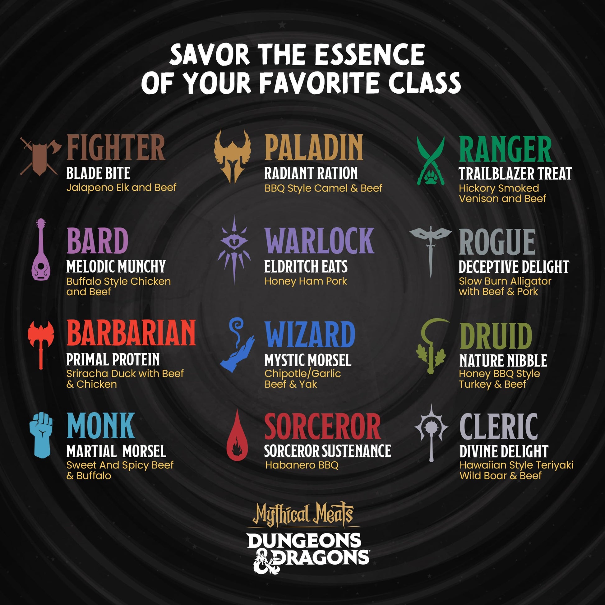 Q: Can these jerky sticks be an ideal gift for Dungeons & Dragons fans?A: Absolutely! The Mythical Meats Deceptive Delight jerky sticks, with their unique flavors and vibrant packaging, make for an excellent gift for meat lovers and Dungeons & Dragons enthusiasts alike.