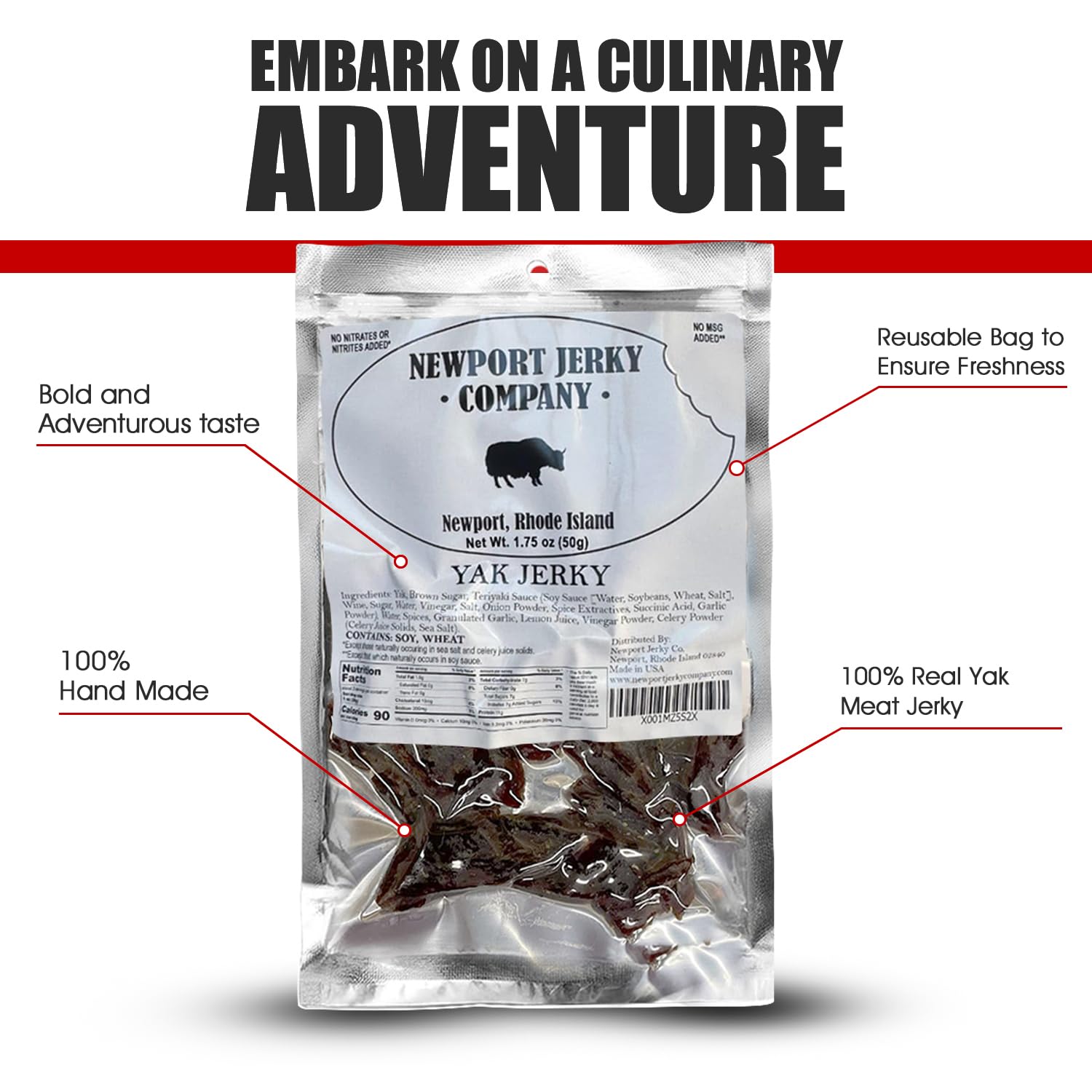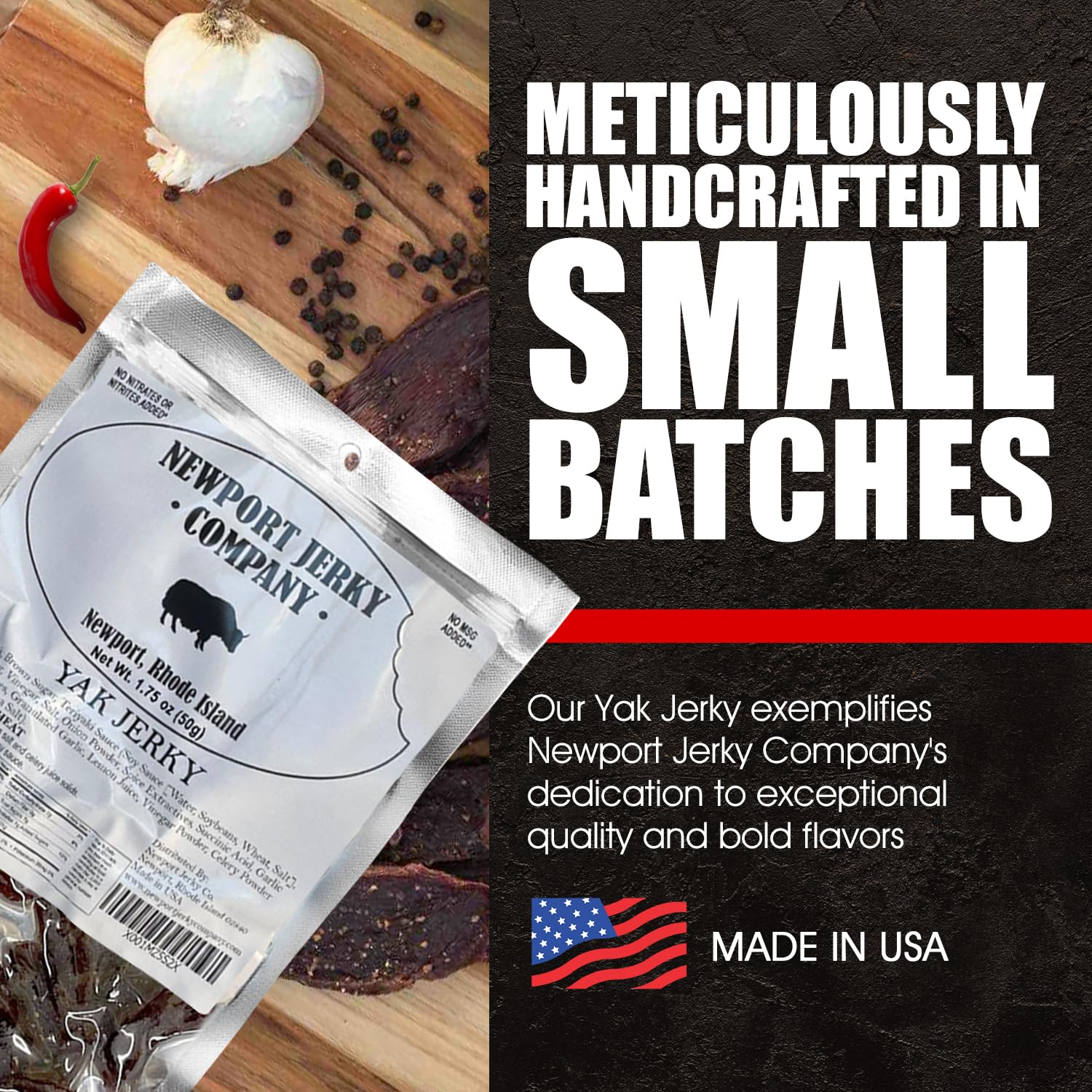 - Q: What makes Newport Jerky Company Yak Jerky different from traditional beef jerky? A: Newport Jerky Company Yak Jerky is made from 100% real yak meat, offering a bold, smoky flavor that sets it apart from traditional beef jerky. It is lean, high-protein, and contains no preservatives or fillers, making it a unique and healthier snack option.