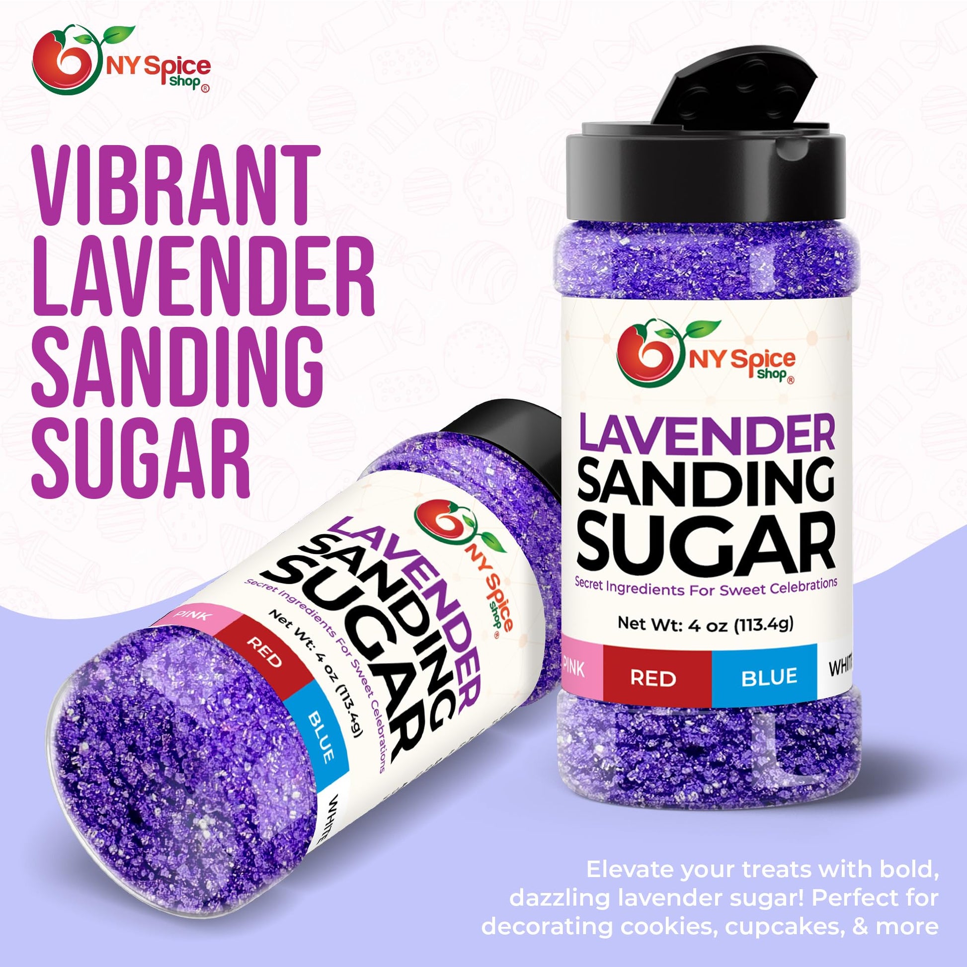 Q: What is NY Spice Shop Lavender Sanding Sugar used for?A: NY Spice Shop Lavender Sanding Sugar is perfect for decorating cakes, cookies, and desserts. It adds a vibrant touch to your sweet treats and can enhance gift baskets and party favors.