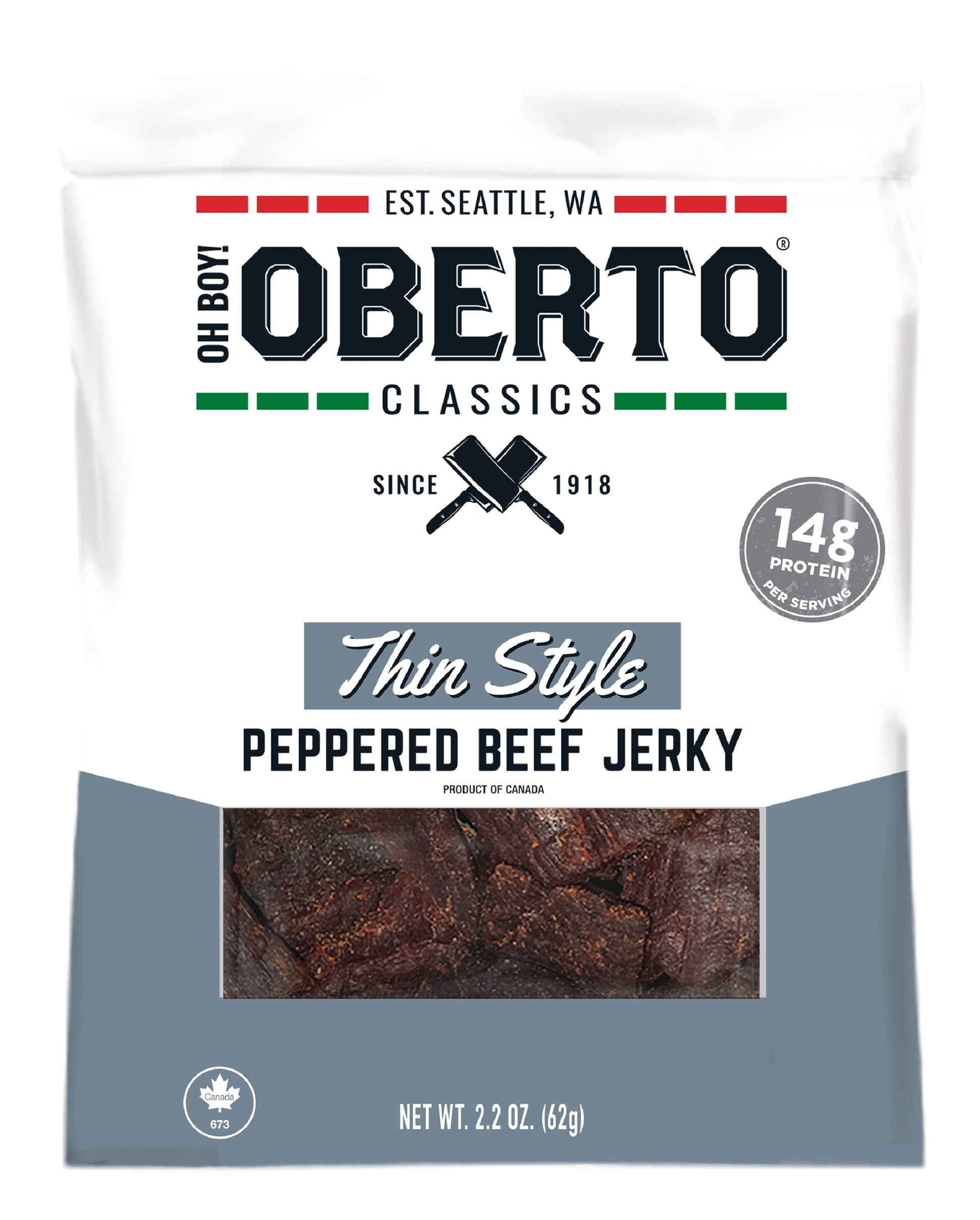 Since its establishment in Seattle, WA in 1918, Oberto has been dedicated to crafting specialty meats using time-honored methods. The founder, Constantino Oberto, set a high standard for quality, and this commitment is evident in every bite of their Thin Style Peppered Beef Jerky.