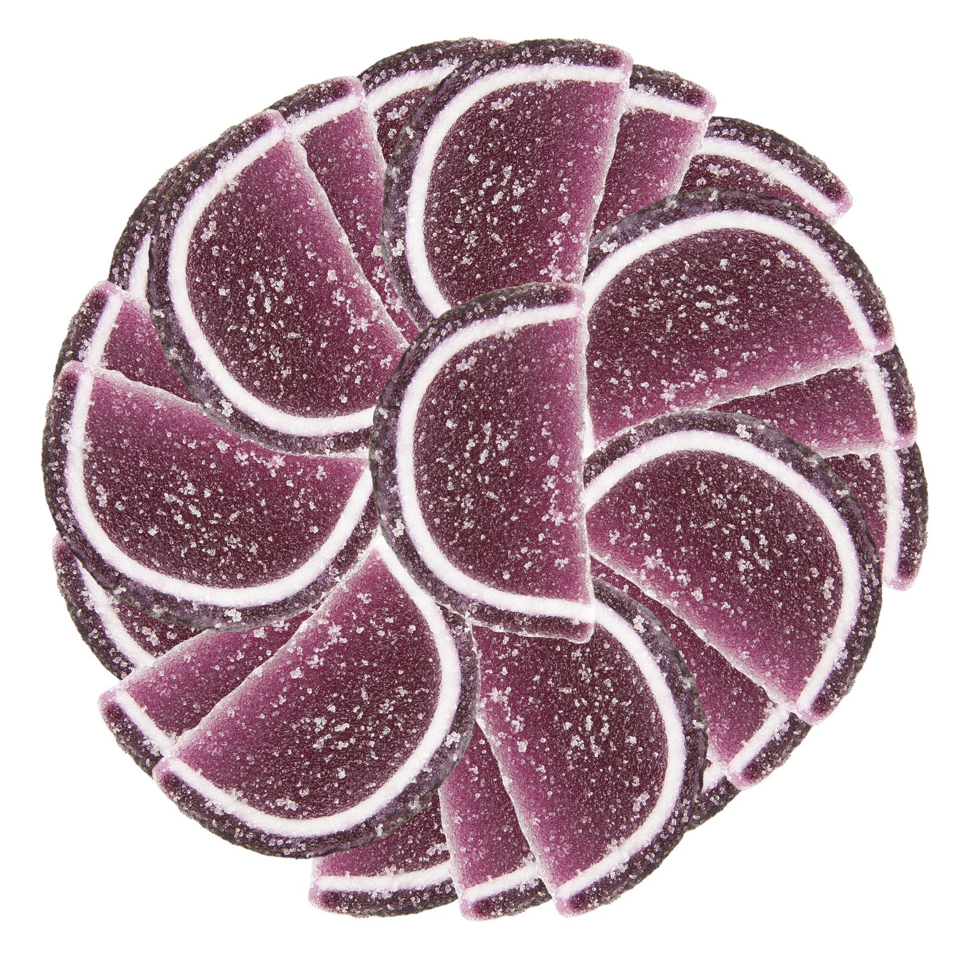Q: What are Oh! Nuts Grape Jelly Fruit Slices made of?A: Oh! Nuts Grape Jelly Fruit Slices are crafted from a firm yet tender jelly center, coated in a light layer of crystallized sugar. They are gluten-free and certified Kosher, making them suitable for a variety of dietary preferences.