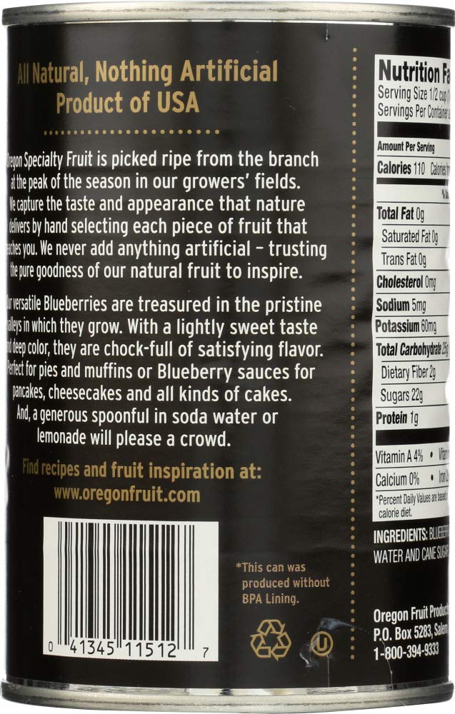 Oregon Fruit Products Blueberries In Light Syrup, 15 Oz (4 Pack)
