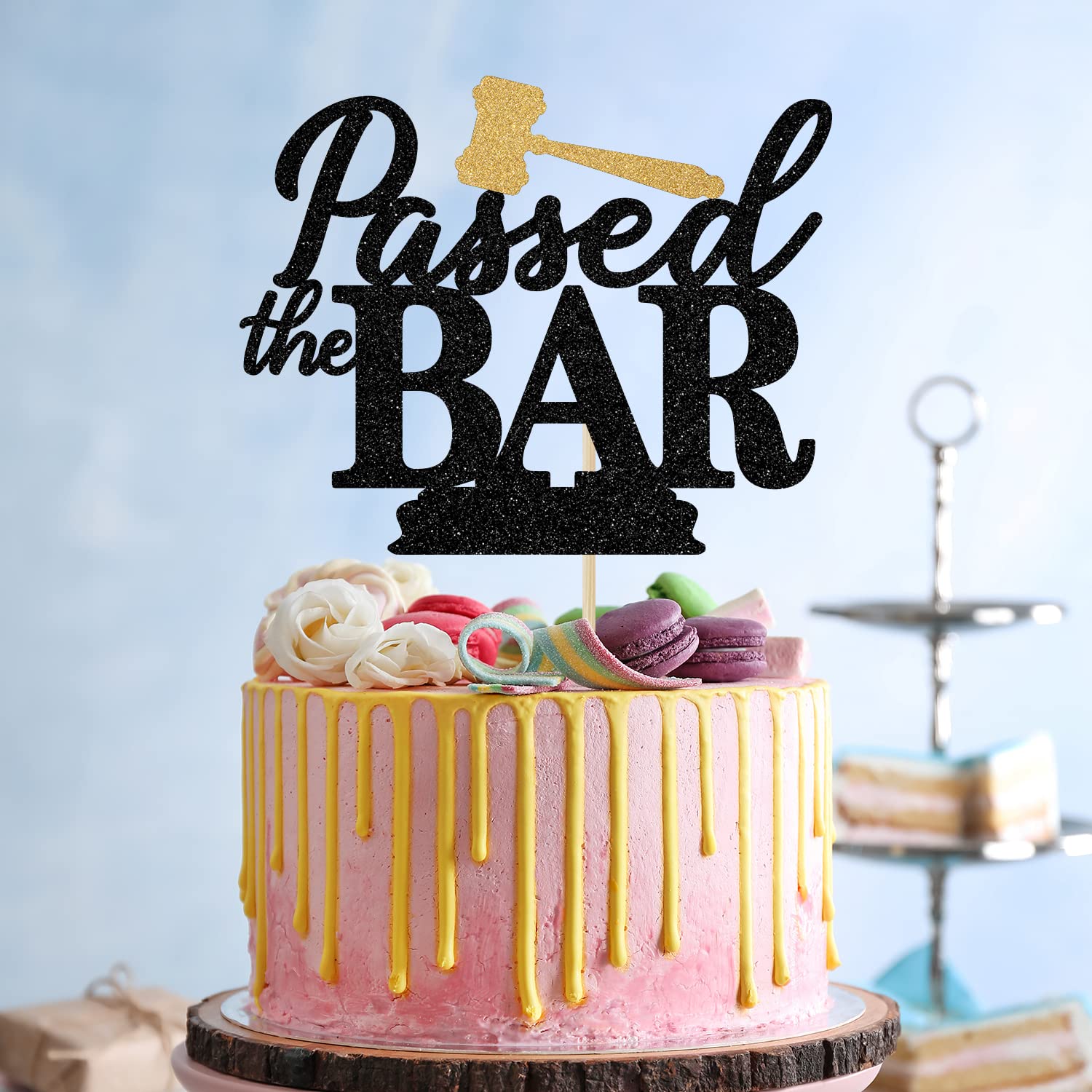 Q: What size is the Passed the Bar Cake Topper?A: The cake topper measures approximately 5.8 inches wide, making it an ideal size to complement your graduation cake.