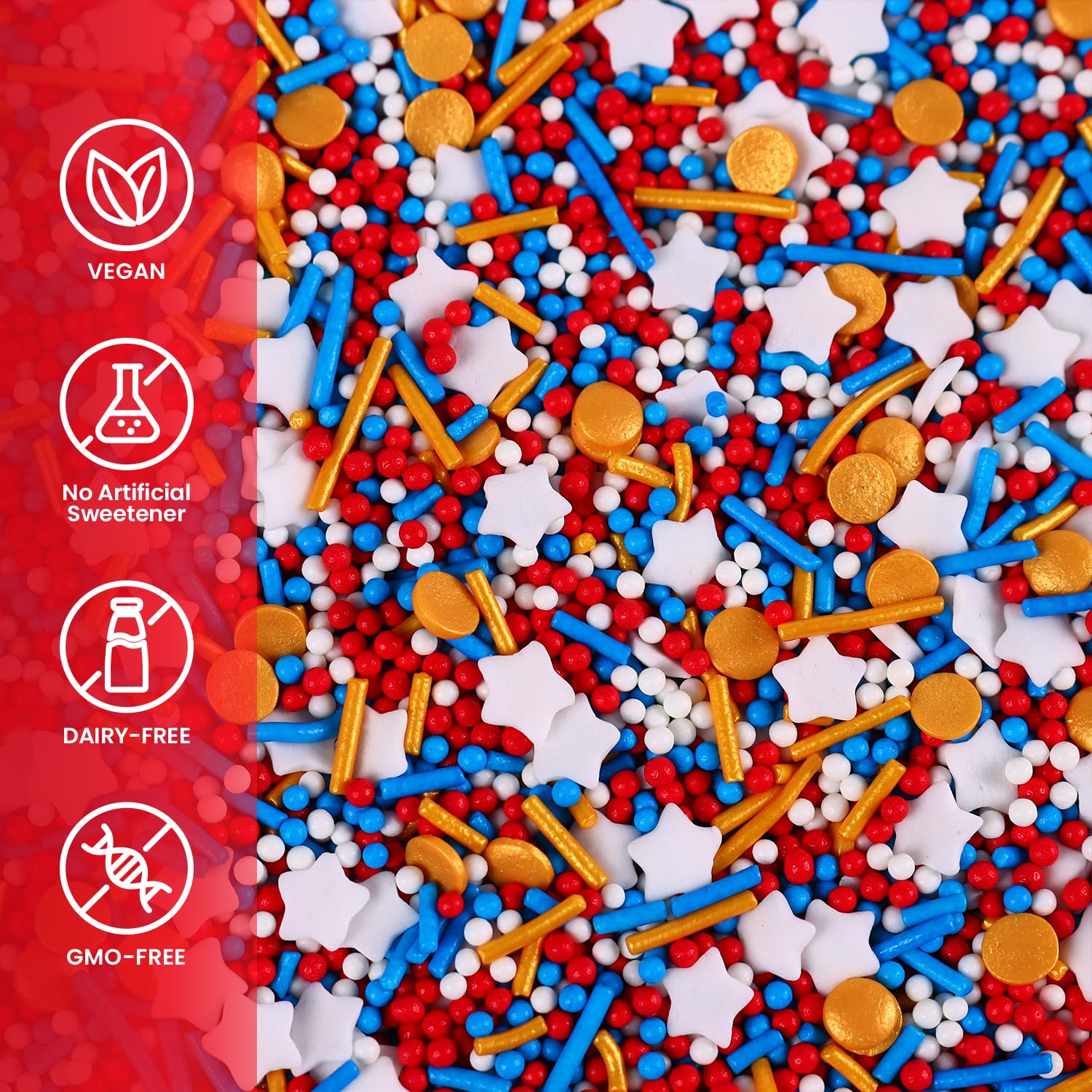Q: Are these sprinkles safe for kids?A: Yes, our Patriotic Sprinkles are suitable for all ages. They are made from safe ingredients and are nut-free, making them a great choice for children's desserts.