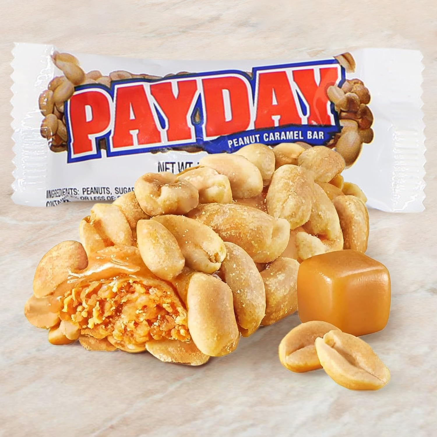 - Q: What are the main ingredients in PaydayBulk Snack Size Candy Bars? A: The PaydayBulk Snack Size Candy Bars are primarily made with crunchy roasted peanuts and soft, rich caramel, providing a satisfying sweet and salty flavor.