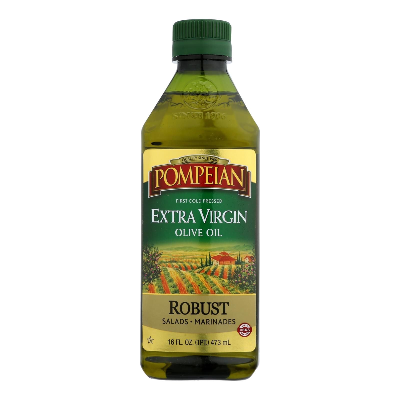 Pompeian 00008 Robust 16 Fl.Oz Extra Virgin Olive Oil, First Cold Pressed, Full-Bodied Flavor, Perfect For Salad Dressings And Marinades, Gluten Free, Non-Allergenic, Non-Gmo, Pack Of 12