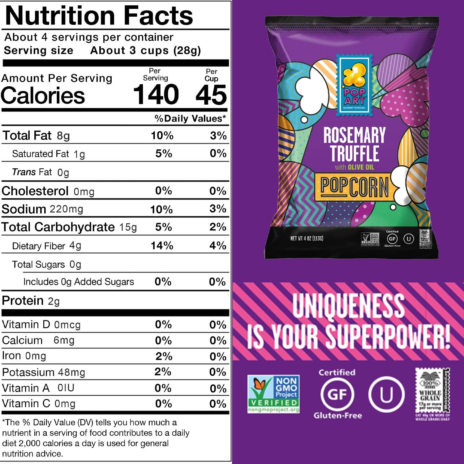 Pop Art Snacks Gourmet Popcorn - Rosemary Truffle With Olive Oil - Gluten Free Vegan Popcorn - Flavored Snacks For Adults, Kids,