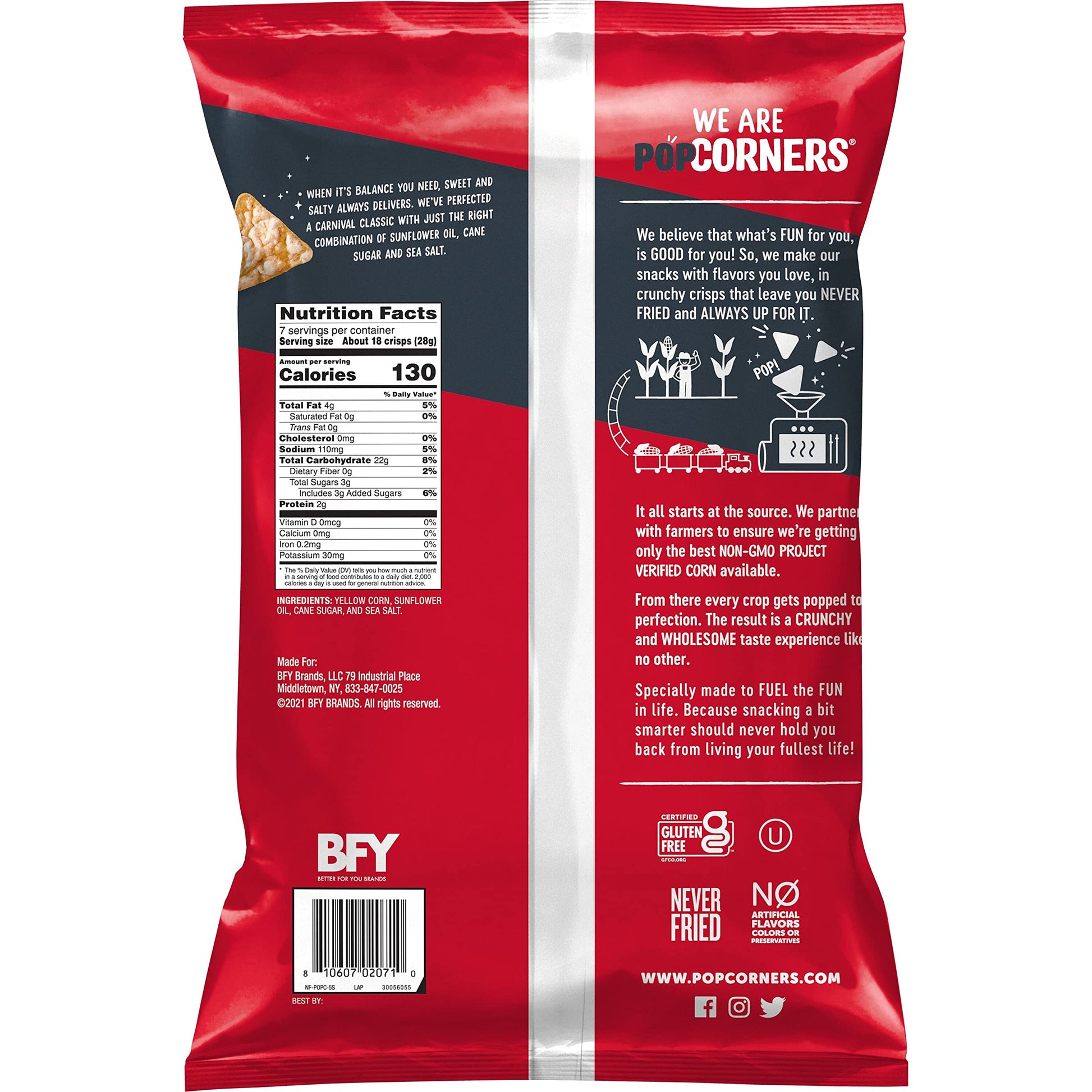 - Q: What makes Popcorner Kettle Corn Popped Corn Chips different from regular popcorn? A: Unlike traditional popcorn, Popcorner Kettle Corn Popped Corn Chips are uniquely shaped chips that combine the sweet and salty flavors of kettle corn in a crunchy, chip format. They are not fried and are a fun alternative to regular popcorn.