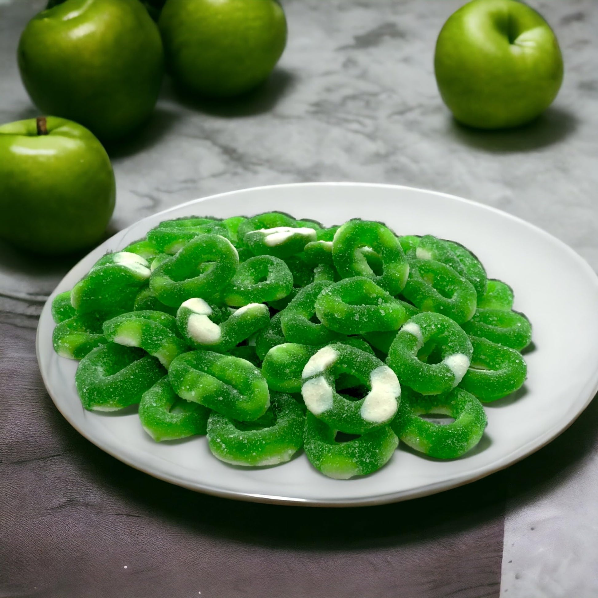 Savor The Sweet And Sour Delight Of Our Apple Gummy Rings, A Top-Notch Product In The Candy World. Each Ring Is Coated With A Layer Of Sugar For An Extra Sweet Kick. Perfect For Any Occasion, These Gummies Are Ideal As A Bulk Candy For Parties, Baby Showers, Or Just For A Sweet Treat To Enjoy At Home. Our Gummy Rings Are Not Your Typical Gummy Candy, They Are A Blend Of The Best Candy Characteristics: Soft, Chewy, And Irresistibly Sweet. These Apple Rings Are Also A Great Substitute For Traditional Valentine'S Gummy Candy Or Easter Gummy, Adding A Touch Of Uniqueness To Your Celebrations. Whether You Are Planning To Have Bulk Gummy Candy For A Party, Or Looking For The Perfect Sweet Gift, Our Apple Rings Are The Perfect Choice. From The Vibrant Green Color To The Tangy-Sweet Taste, They Are Designed To Delight. So Why Wait Indulge In Our Apple Rings Today And Experience Gummy Candy Like Never Before.