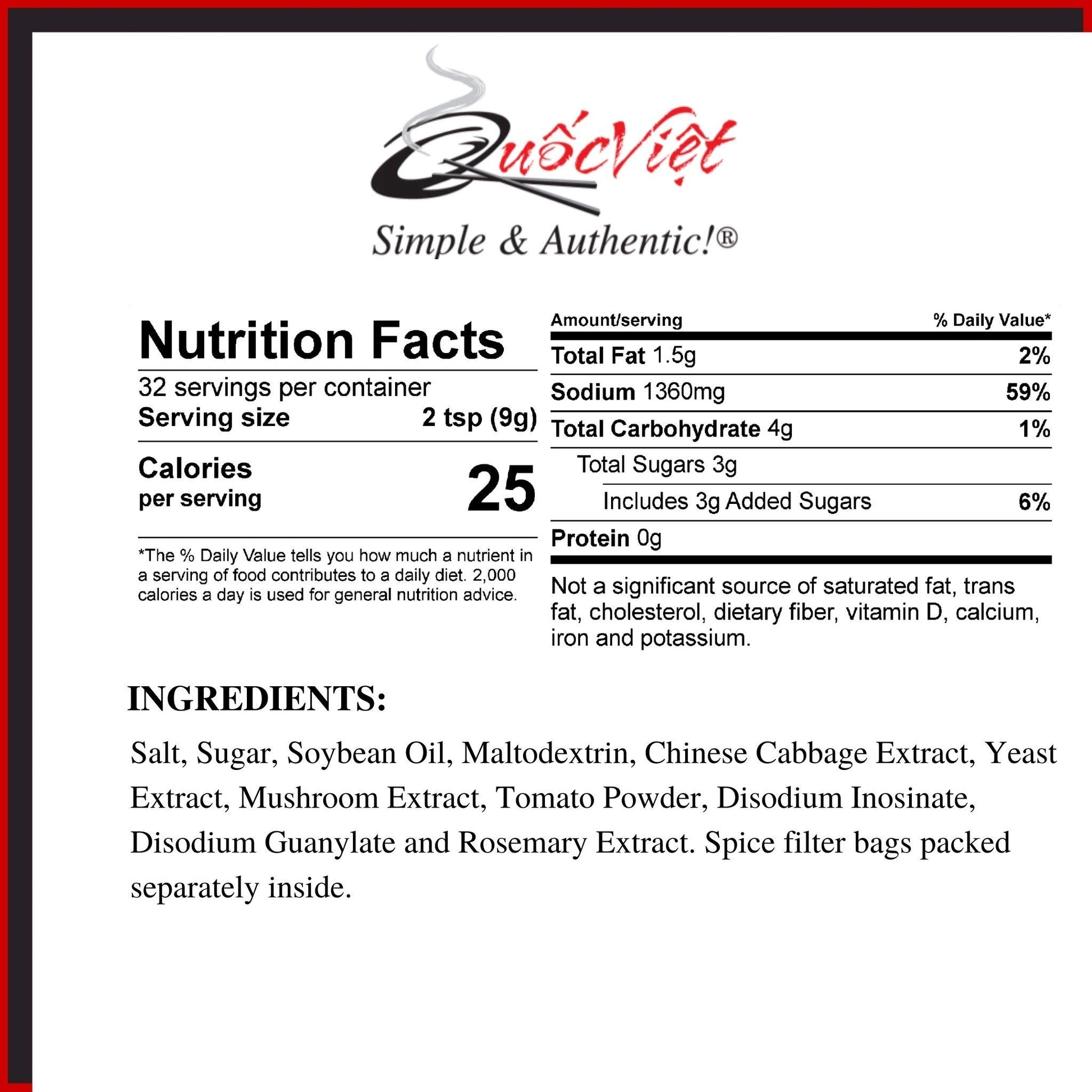 - Q: What are the main ingredients in Quoc Viet Foods Vegetarian Pho Soup Base? A: Quoc Viet Foods Vegetarian Pho Soup Base is crafted from natural ingredients without preservatives and is certified vegan. It contains no monosodium glutamate (MSG), ensuring a clean and authentic flavor.