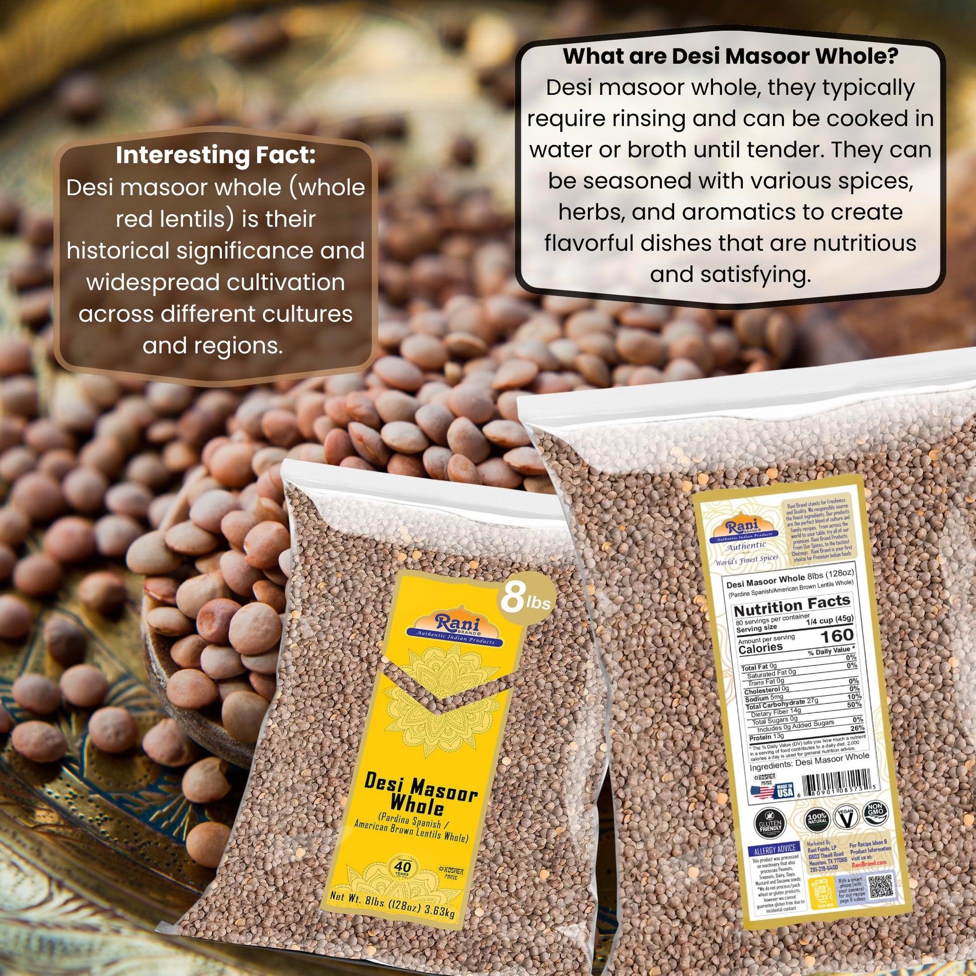 - Q: Where are Rani Desi Masoor Whole Lentils sourced from? A: Rani Desi Masoor Whole Lentils are sourced from the USA, ensuring high quality and adherence to food safety standards. Rani has been a trusted brand in spices and lentils for over 40 years.