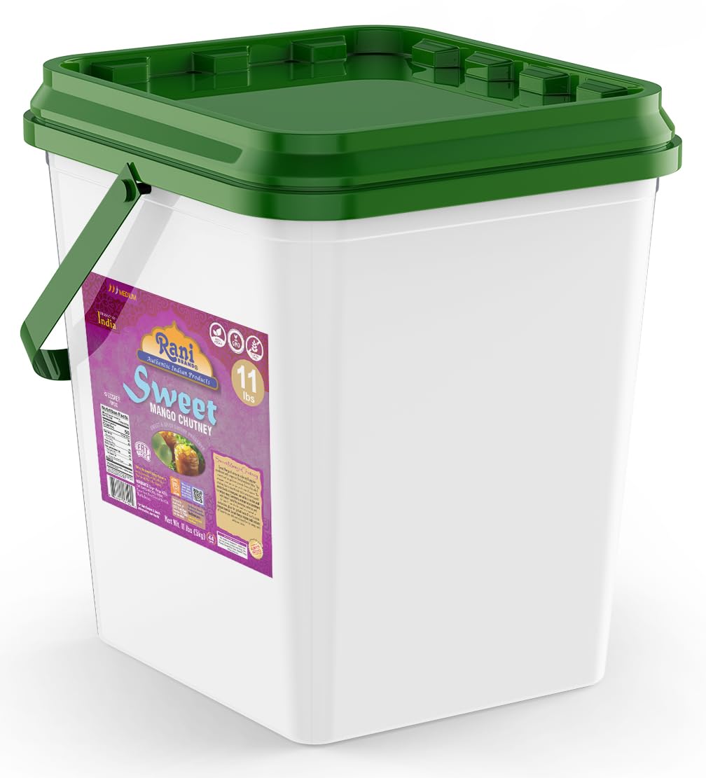 - Q: What is the net weight of Rani Sweet Mango Chutney, and where is it produced? A: Rani Sweet Mango Chutney has a net weight of 176oz (11lbs) or 5kg. It is an authentic product of India, bringing traditional flavors to your table.