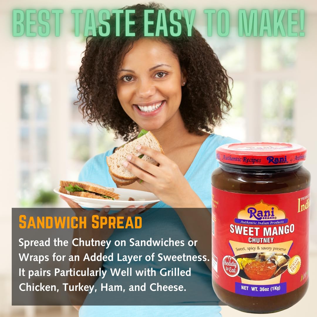 Q: What are the benefits of choosing Rani Brand products?A: Rani Brand products, including Sweet Mango Chutney, are all natural, non-GMO, and contain no preservatives. They are made using authentic family recipes, ensuring high quality and taste.