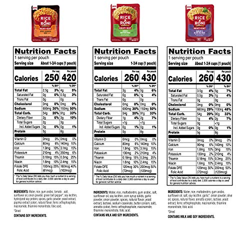 Q: What flavors are included in the Rice-A-Roni Heat & Eat Rice Variety Pack?A: The Rice-A-Roni Heat & Eat Rice Variety Pack includes three delicious flavors: Herb & Butter, Spicy Spanish, and Garlic & Olive Oil, with two pouches of each flavor.