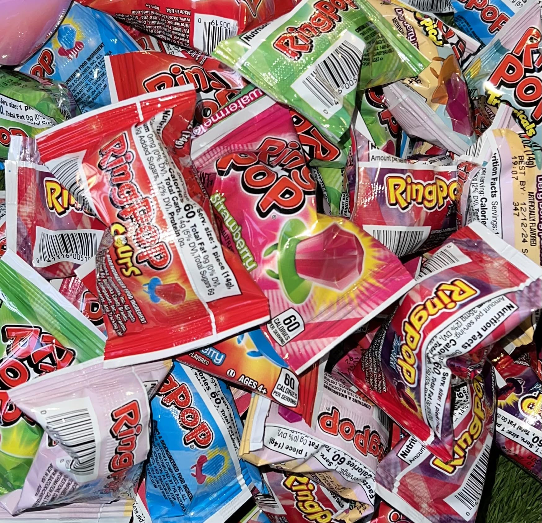 Q: Are the lollipops individually wrapped?A: Yes, each Ring Pop is individually wrapped, ensuring freshness and making them easy to share at parties or events.