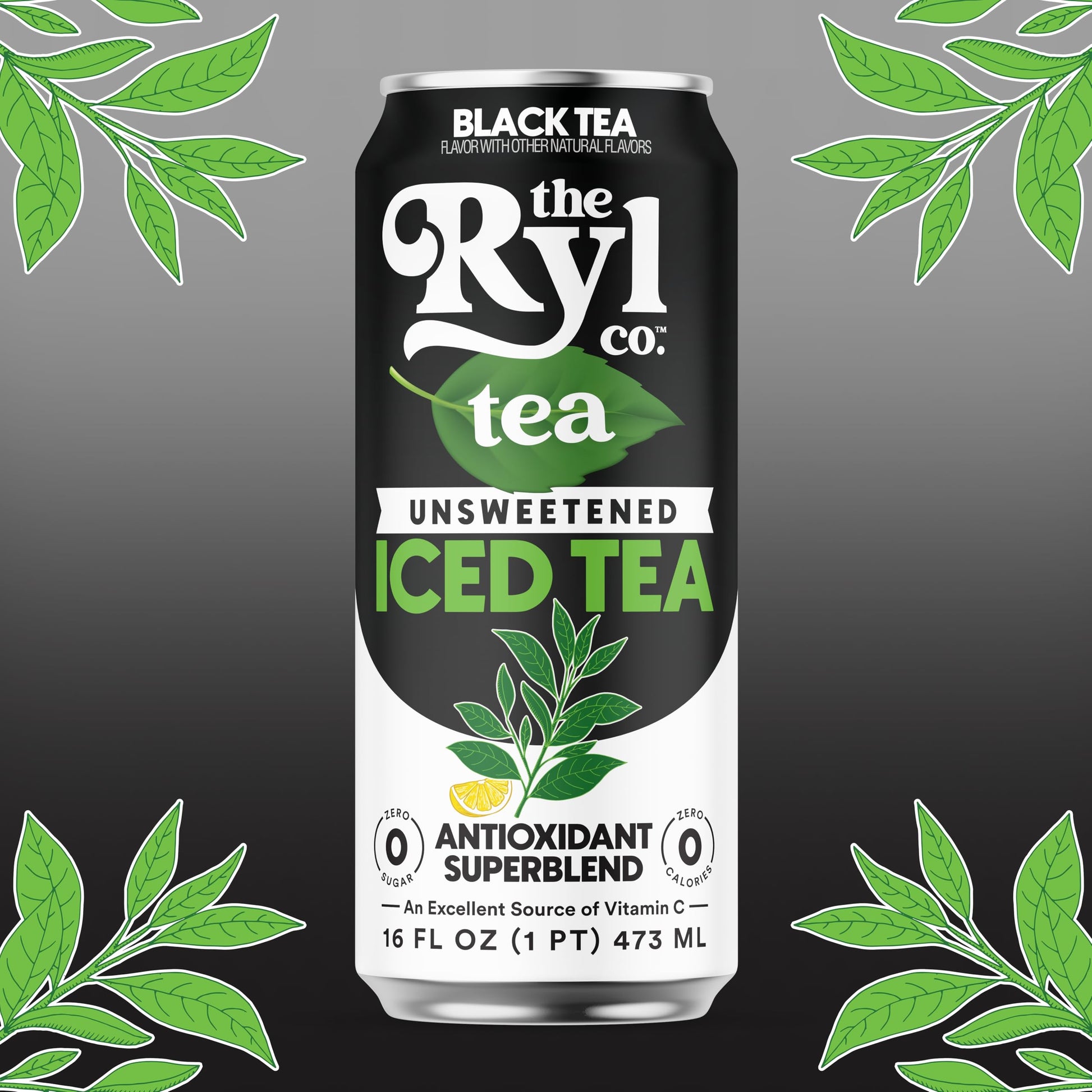 Ryl Unsweetened Black Iced Tea, 12-Pack (16oz), Zero Sugar, Low Carb, Non-GMO, Antioxidant Superblend, Gluten Free, Kosher