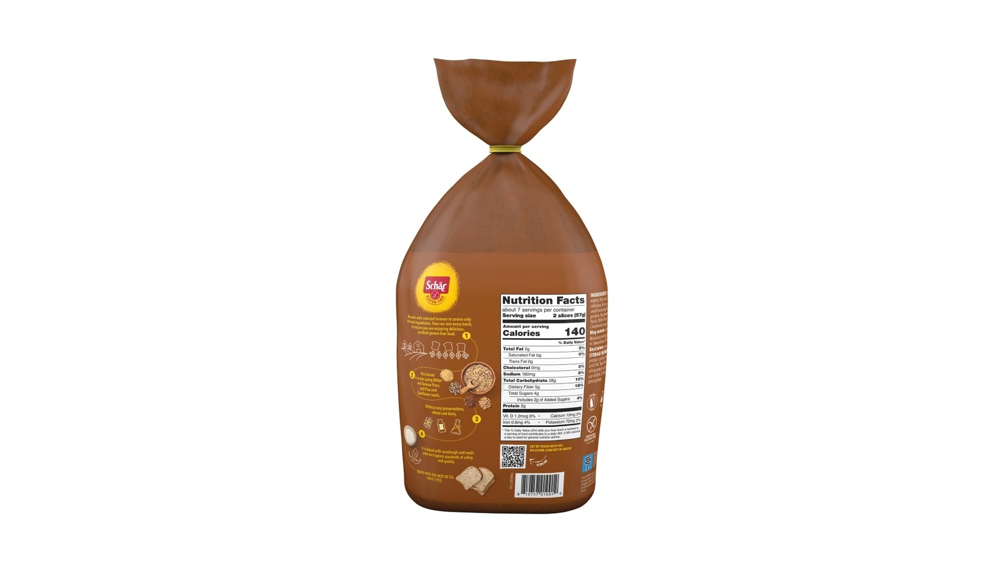 Q: Does this bread contain any artificial ingredients?A: Schär takes pride in using premium ingredients in their gluten-free bread, ensuring that it is free from artificial additives while delivering both softness and flavor.