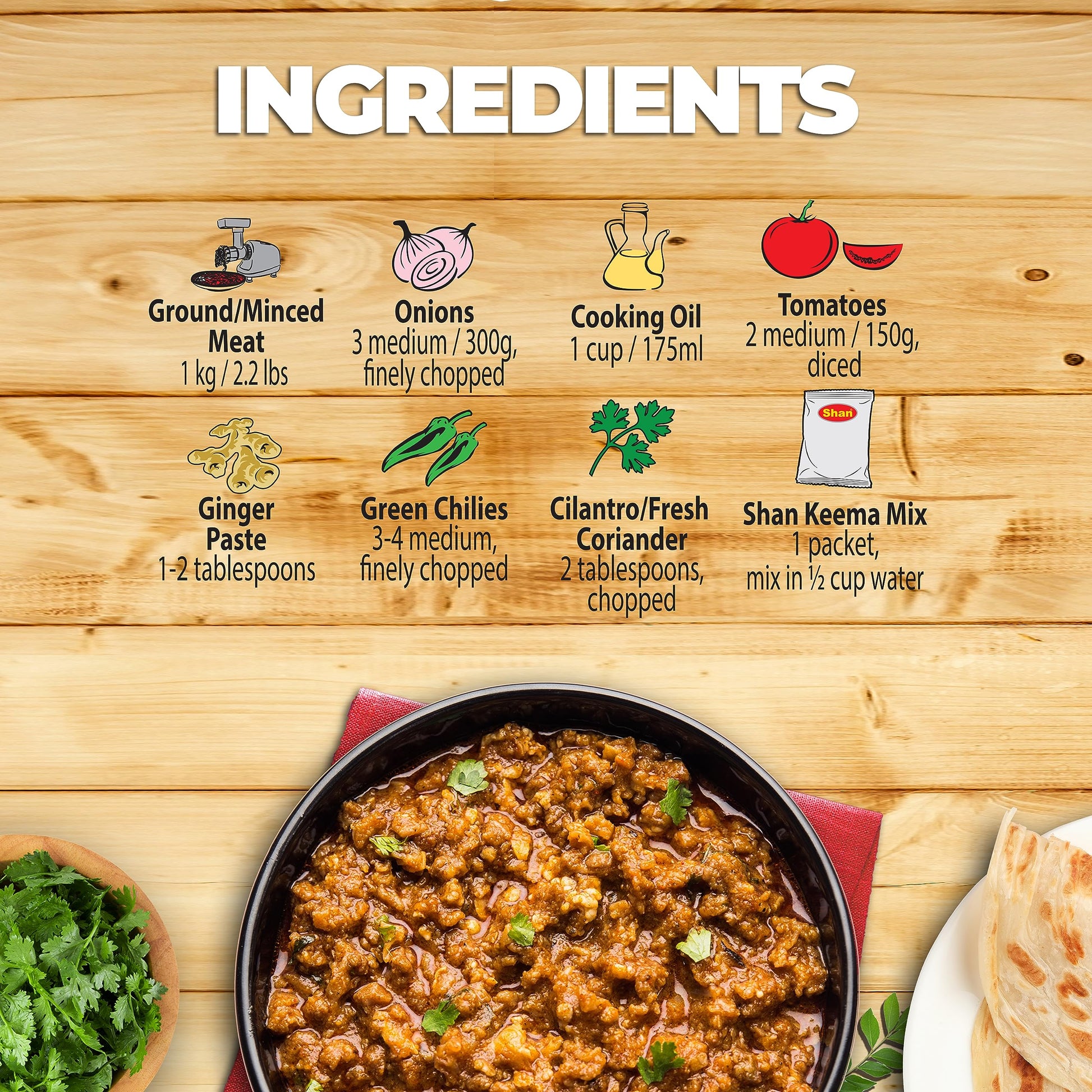 Q: What types of meat can I use Shan Keema Masala with?A: Shan Keema Masala is versatile and can be used with various types of ground meats, including beef, goat, and chicken. It's designed to enhance the flavor of all these meats, making it an excellent choice for your favorite recipes.