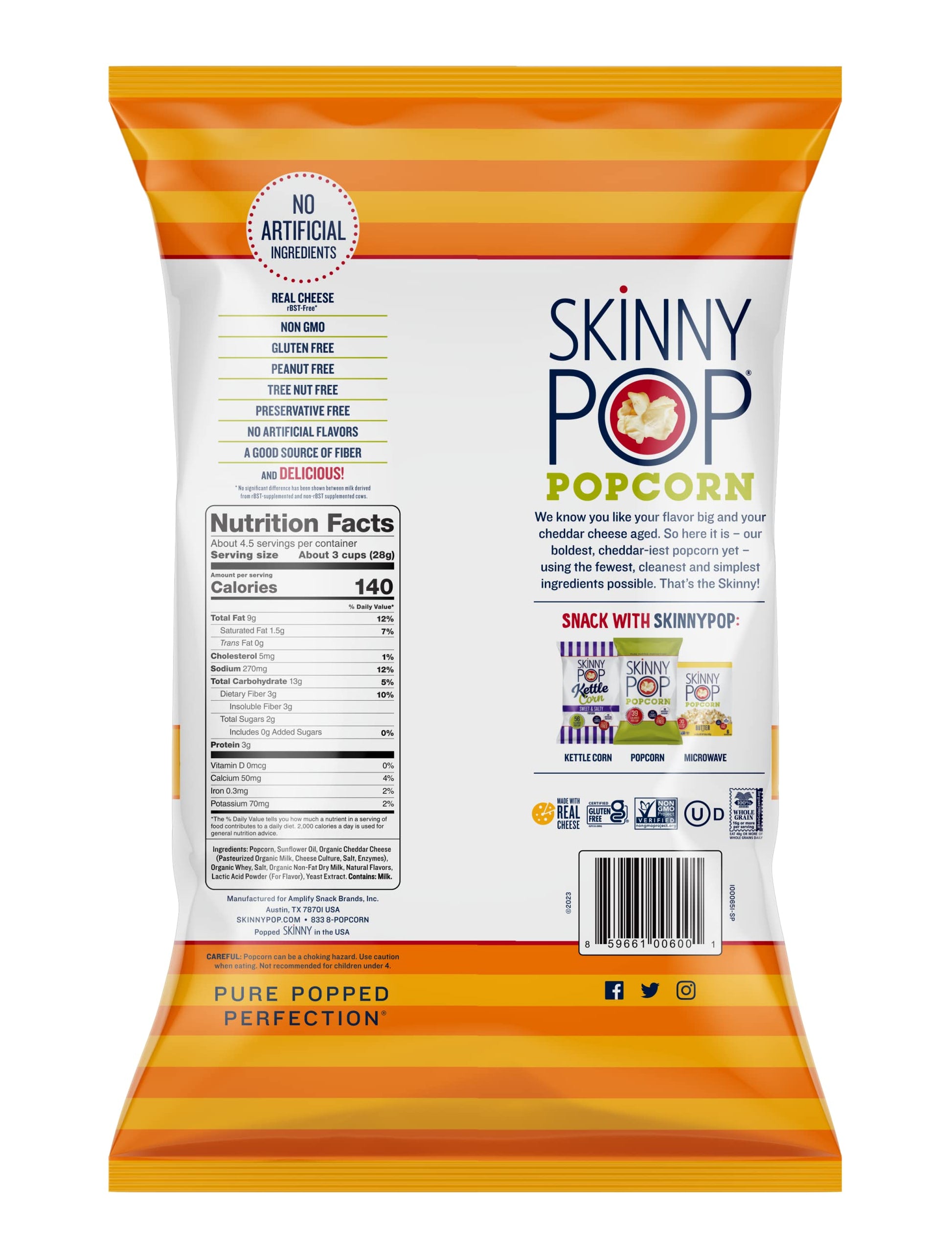 Skinnypop Aged White Cheddar Popcorn, Gluten Free, Non-Gmo, Healthy Popcorn Snacks, Skinny Pop, 4.4 Oz Grocery Sized Bags (12 Co