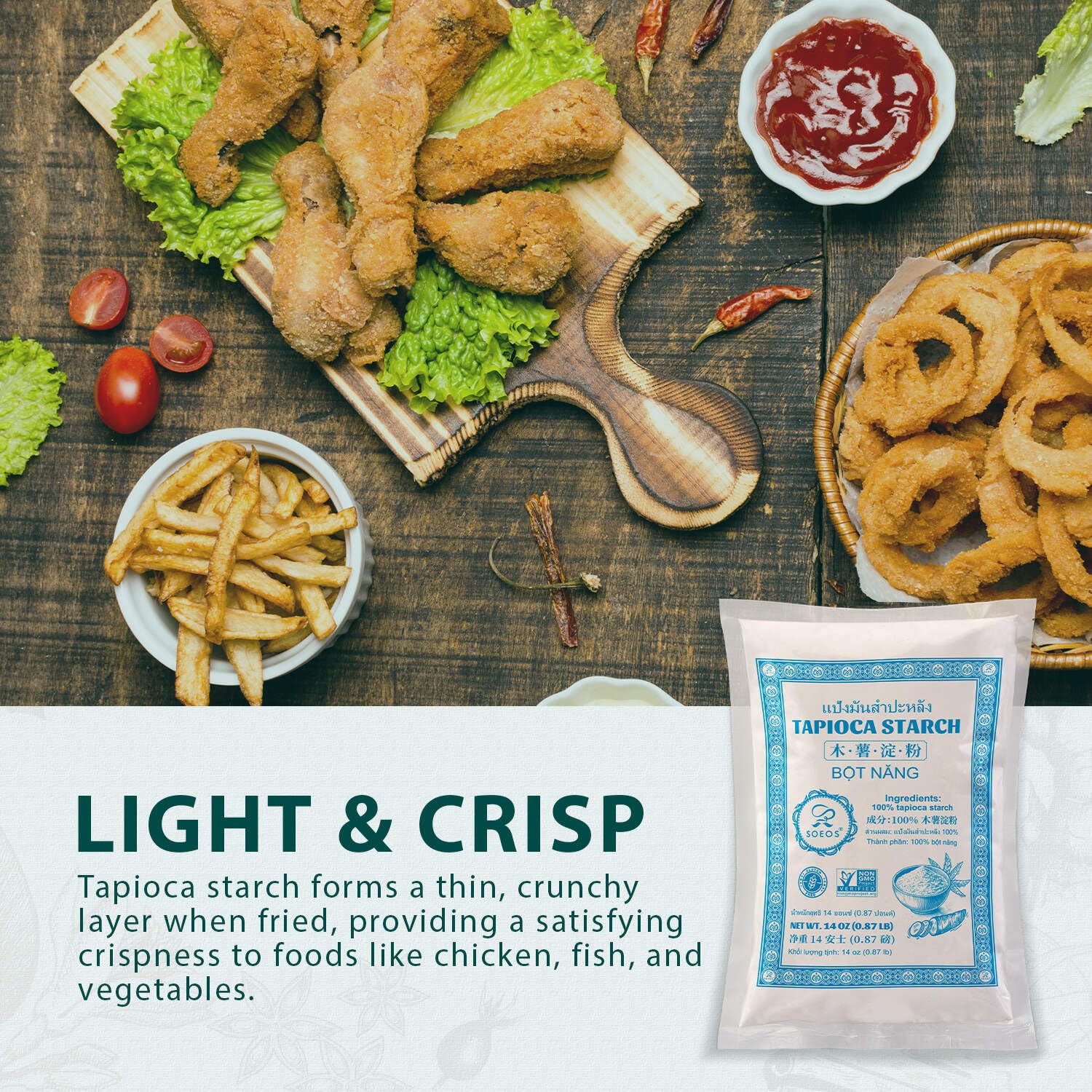 Tapioca Starch: 100% Derived From The Root Of The Cassava Plant, Soeos Tapioca Flour Is A Great Gluten-Free Substitute For Wheat Flour, Is A Pantry Essential For Cooks And Bakers | Versatile Thickening Agent: Tapioca Powder Has A Neutral Tast, It'S An Excellent Thickener And Binder; Tapioca Starch Provides A Silky And Glossy Texture Without Altering Flavor, Perfect For Soups, Sauces, Gravies And Pie Fillings | Ideal For Baking: Enhance The Texture Of Your Cakes, Cookies, And Bread With Soeos Tapioca Flour; It Ensures A Light And Fluffy Consistency, Perfect For Puddings, Vegan Cheeses, And A Variety Of Culinary Creations | Superior Binding Properties: Tapioca Starch Is Essential For Creating Chewy Boba Pearls, Mochi, And Other Delightful Desserts | High-Quality And Pure: Free From Additives, Ensuring A Clean And Neutral Taste For All Culinary Applications