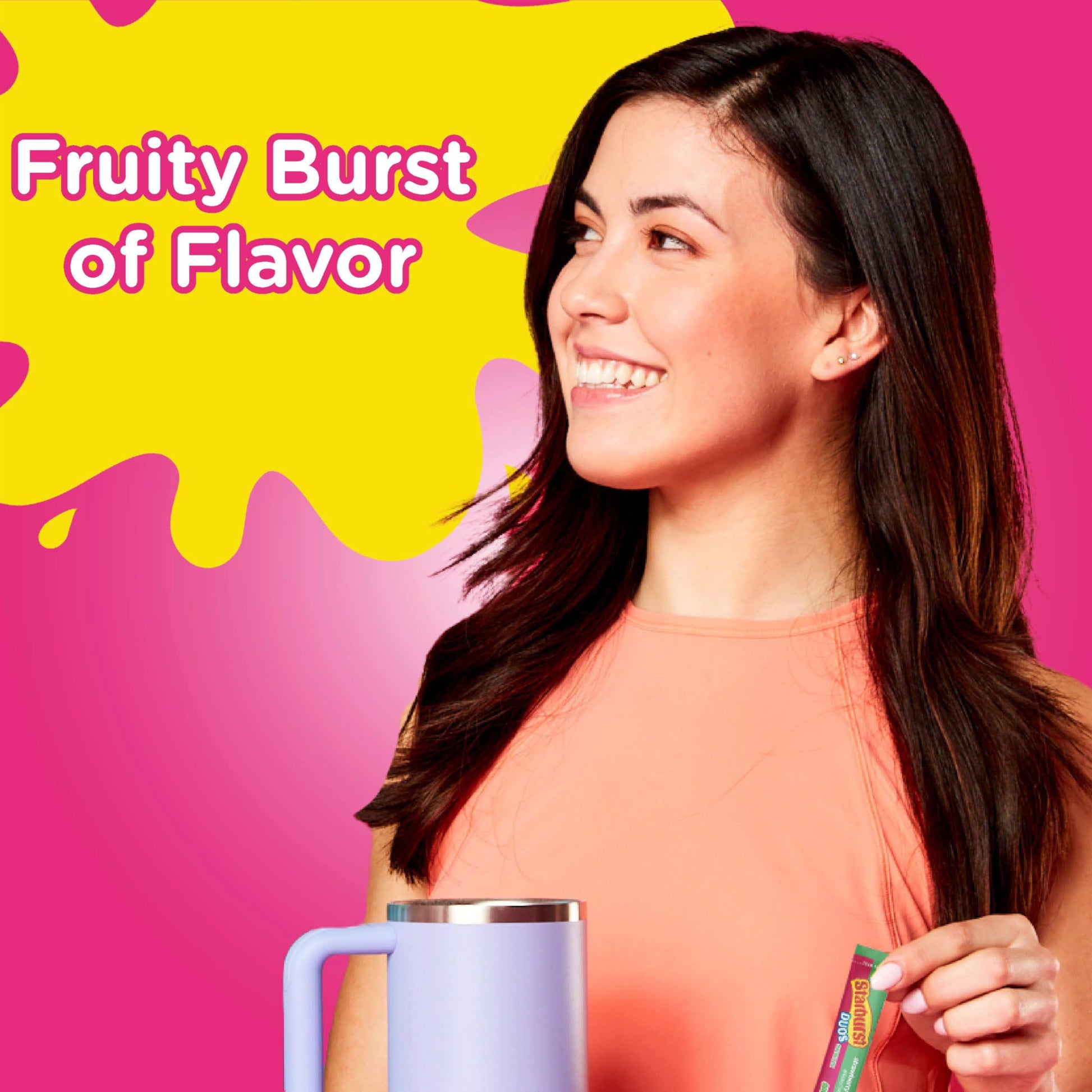 Bring The Unexplainably Juicy Flavor With You Everywhere You Go! The Starburst Singles To Go Powdered Drink Mixes Are A Quick And Easy Way To Add Exciting Flavor To Plain Water. Each Box Contains 6 Powdered Drink Mixes That Are Individually Portioned And Easy To Take With You On The Go. Whether In The Car, On A Plane, Or Sitting At Work Or School, The Single Stick Convenience Makes A Great Tasting Drink Anytime, Anywhere. Its Easy To Mix This Low-Calorie, Zero Sugar Drink Enhancer Into Your Day. Simply Take A Sip From A Full Water Bottle To Make Room For Powder. Pour One Stick Into A 16. 9 Fl. Oz. Bottle Of Water, Shake Until Well Mixed, And Enjoy!
