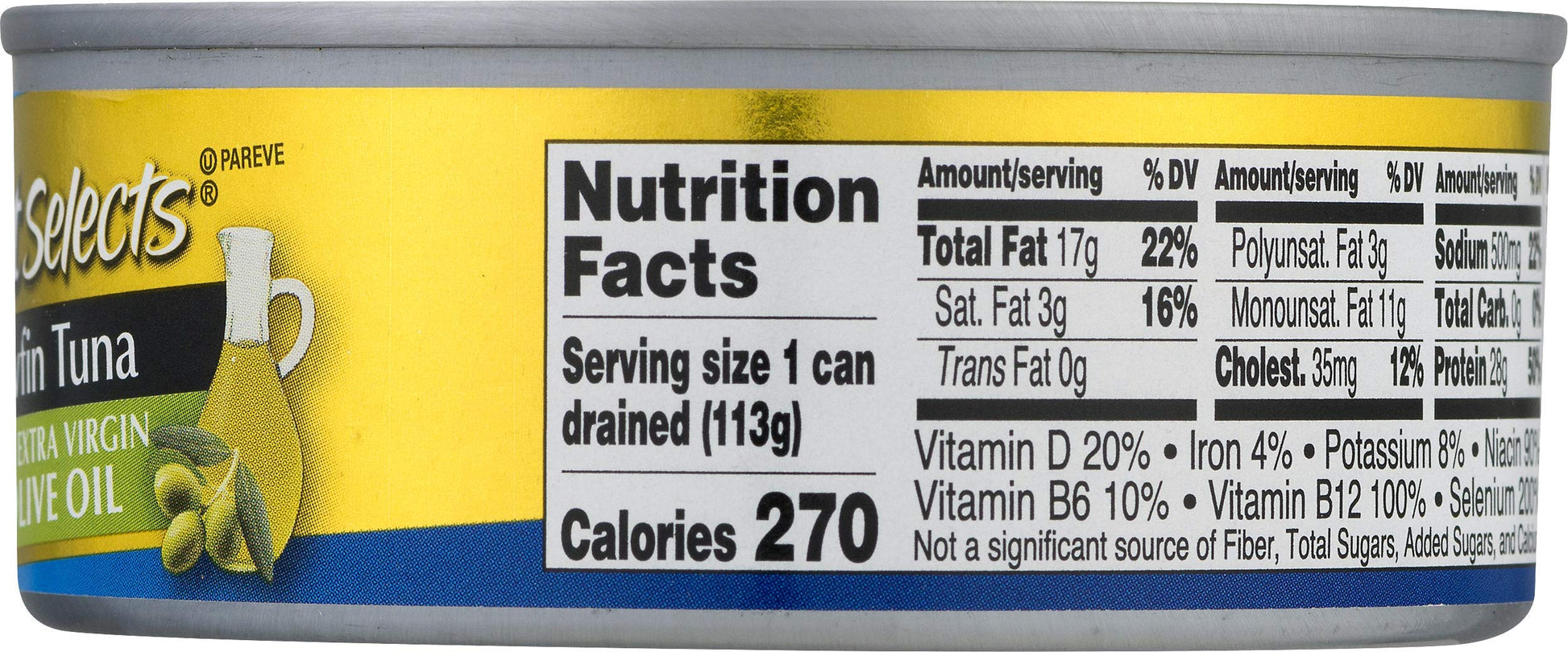 - Q: What are the nutritional benefits of StarKist E.V.O.O. Yellowfin Tuna? A: Each serving of StarKist E.V.O.O. Yellowfin Tuna contains 28g of protein and is a natural source of Omega 3 fatty acids. This makes it a healthy snack or meal choice that supports an active lifestyle.