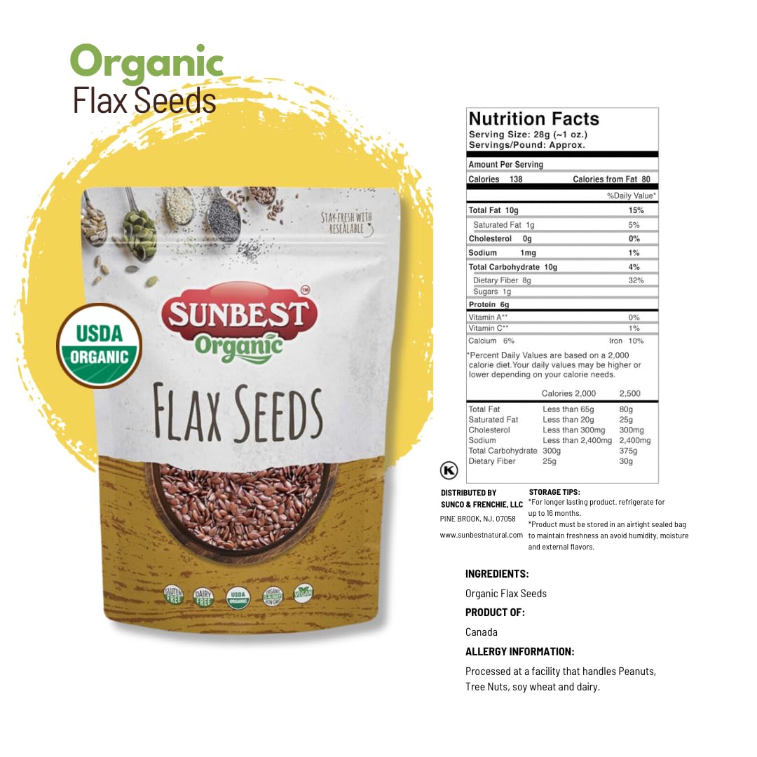 - Q: Can I use Sunbest Flax Seeds in baking and cooking? A: Absolutely! Sunbest Flax Seeds have a mild, nutty flavor that makes them versatile for baking and cooking. You can add them to cereals, smoothies, salads, baked goods, and more to enhance both nutrition and texture.
