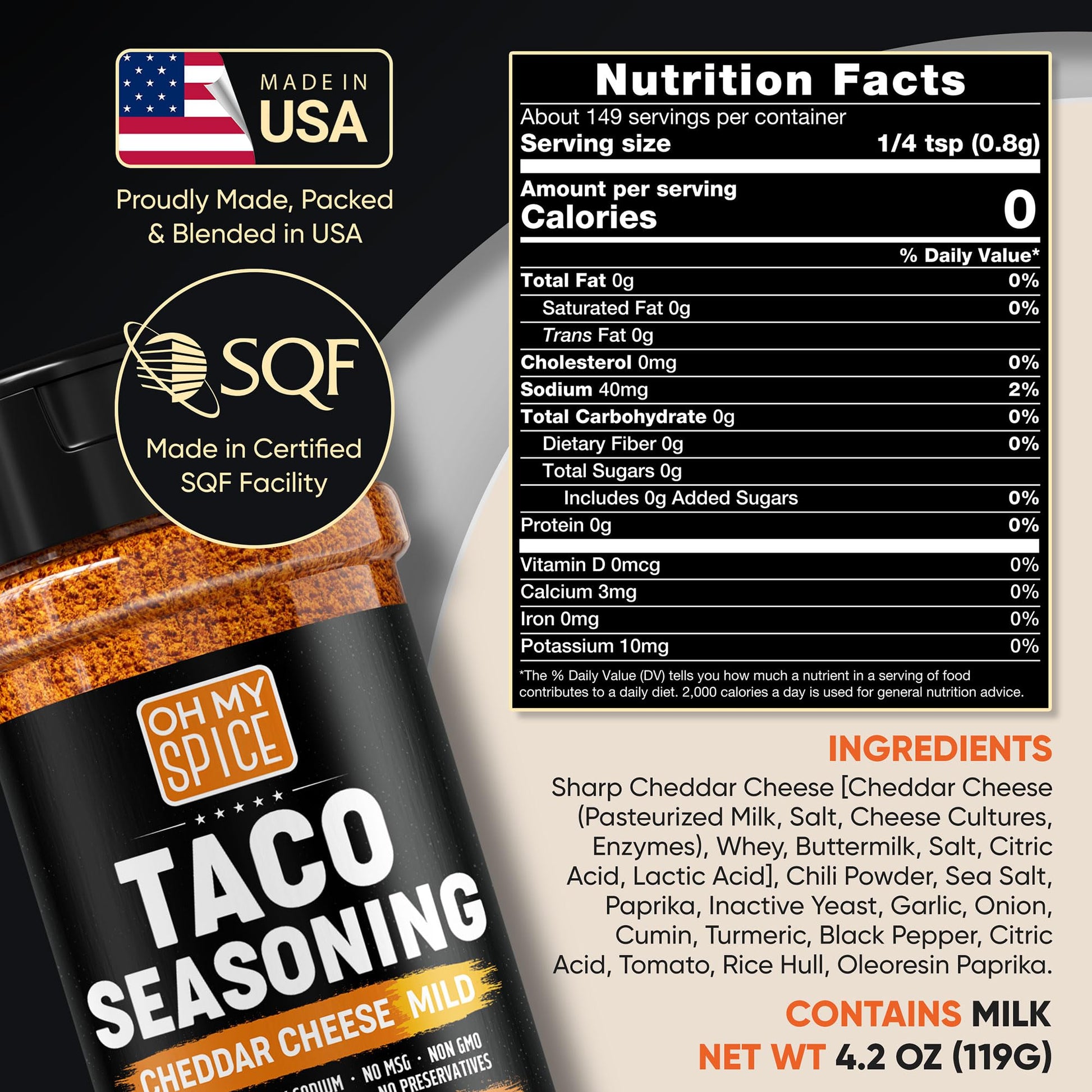 Q: How can I use the Cheddar Cheese Powder seasoning?A: You can use the Cheddar Cheese Powder seasoning for tacos, fajitas, burritos, enchiladas, and even as a nacho cheese powder for dips and popcorn. It's versatile for many Tex-Mex dishes!