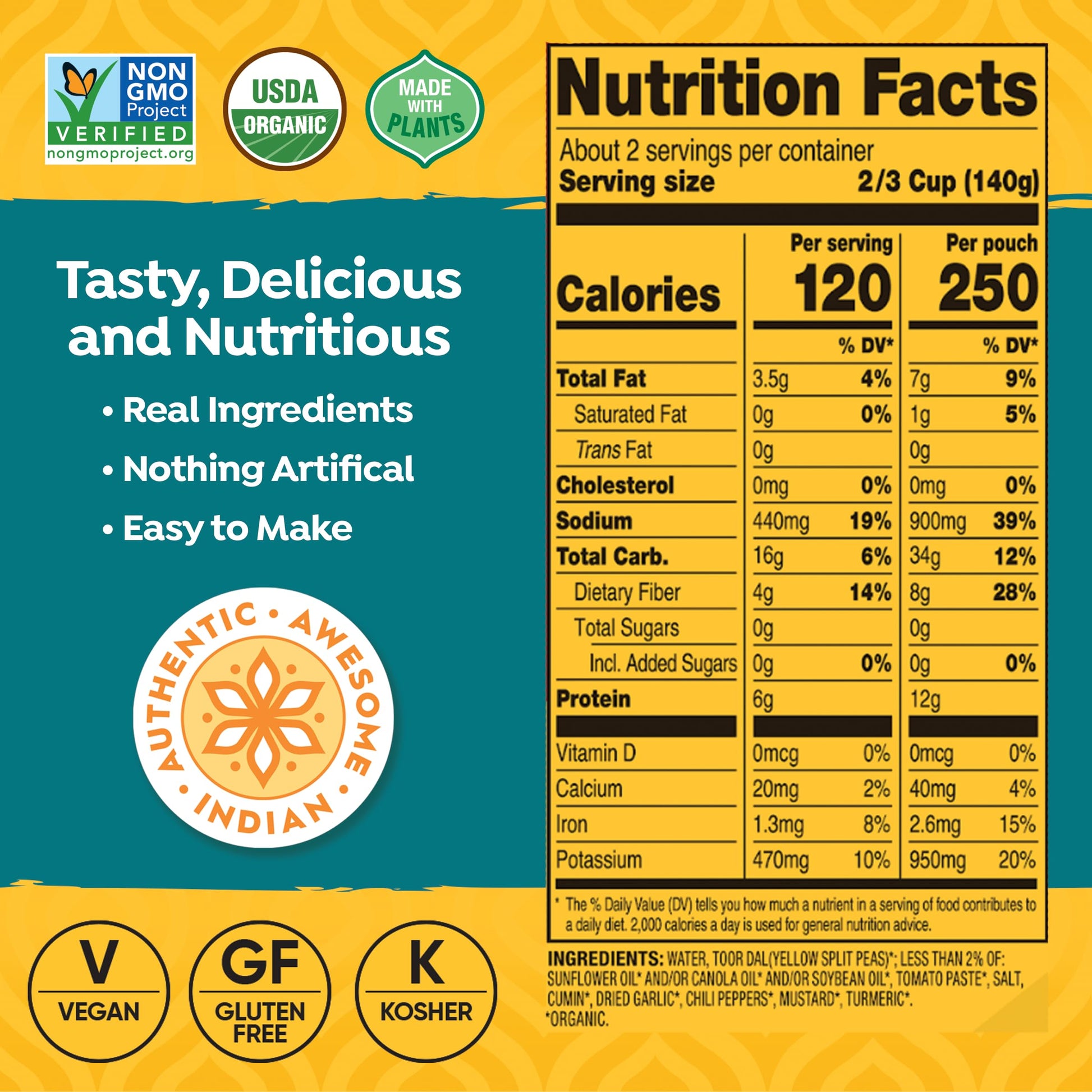 Tasty Bite Organic Jodhpur Lentils, 10 Ounce, Pack Of 6, Ready To Eat, Microwavable Entree, Vegan ( 6 Count )