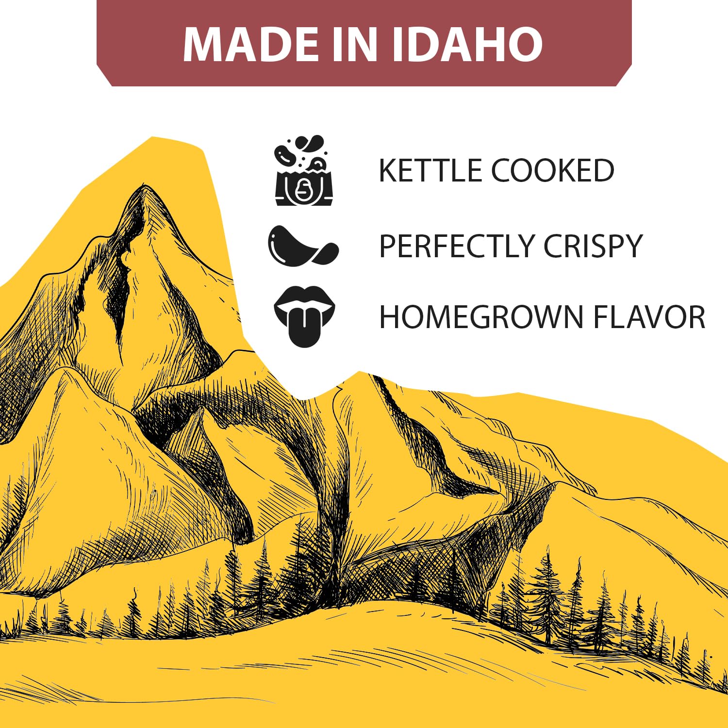 Q: What makes Teton Valley Kettle Cooked Potato Chips different from regular potato chips?A: Teton Valley Kettle Cooked Potato Chips are slow-cooked for a unique crunch and intense flavor, using high-quality ingredients that elevate your snacking experience compared to traditional potato chips.