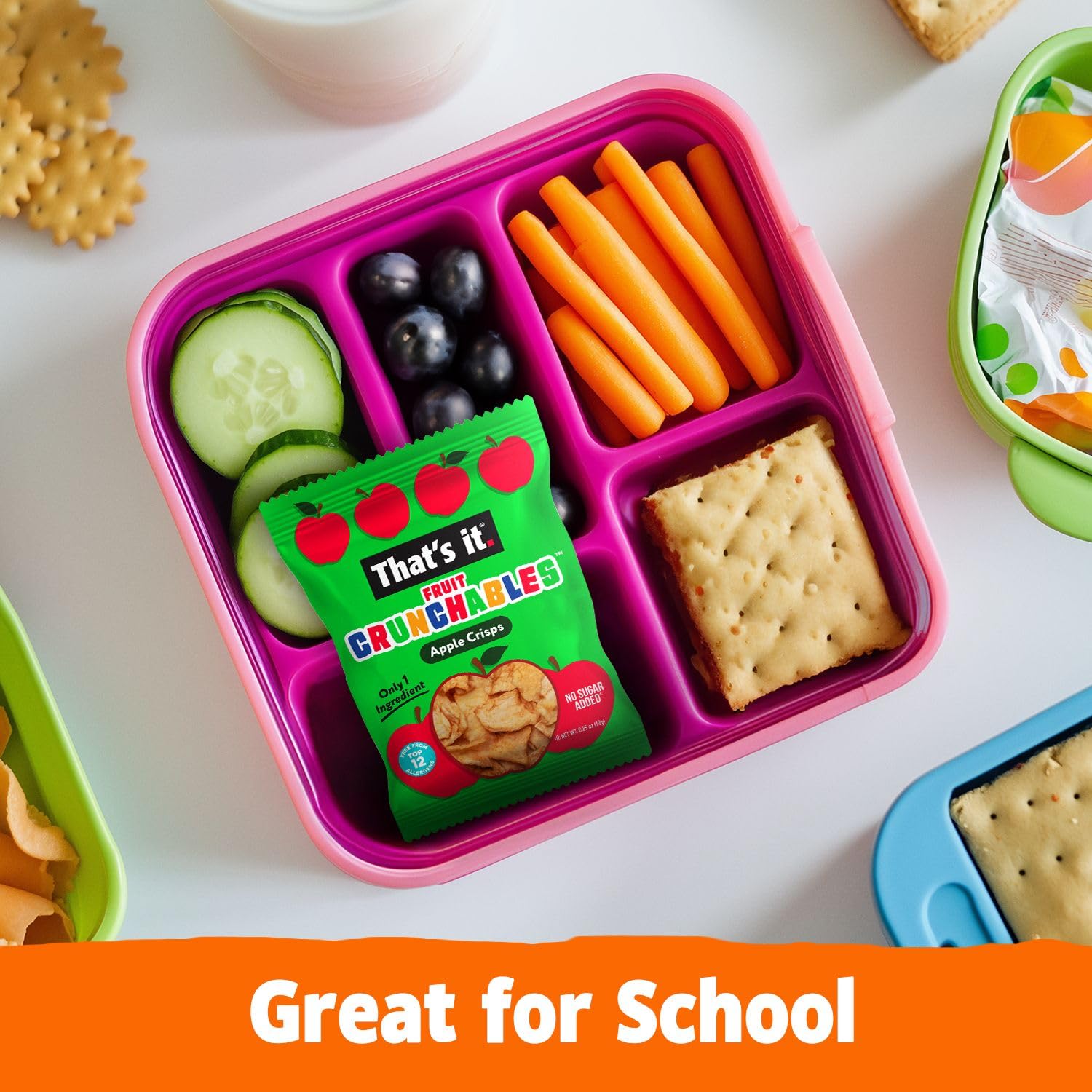 Thats It. Fruit Crunchables (15 Pack) - Apple Crisps Are The Ultimate Choice In Healthy Snacks For Kids And Adults, Offering Pure, Delicious Crunch Made From 100% Whole Fruit. These Apple Crisps Are Crafted With No Added Sugar, Artificial Preservatives, Or Fillers, So You Get The Natural Sweetness Of Real Apples In Every Bite. Perfect For Health-Conscious Parents, They Make An Ideal Addition To Lunch Boxes, After-School Treats, Or On-The-Go Snacking. Packed With Benefits, These Apple Crisps Are Plant-Based, Non-Gmo, Gluten-Free, And Free From The Top 12 Allergens Like Nuts, Soy, Dairy, And Gluten, Making Them A Safe Choice For Kids With Food Allergies Or Sensitivities. Plus, With A Long Shelf Life Of Up To 24 Months, Theyre Incredibly Convenient To Keep On Hand For Any Snack Need. Not Only Are They Healthy, But Thats It. Apple Crunchables Also Offer A Light, Satisfying Crunch That Kids Love And Parents Can Feel Good About. Theyre A Versatile, Naturally Sweet Snack With No Hidden Ingredients, Making Them The Smart Choice For Busy Families Looking To Incorporate More Whole Foods Into Their Diet. Whether Its For Lunch Boxes, Road Trips, Or Just A Tasty, Clean Snack, Thats It. Apple Crunchables Are Designed For Ultimate Convenience And Guilt-Free Enjoyment!