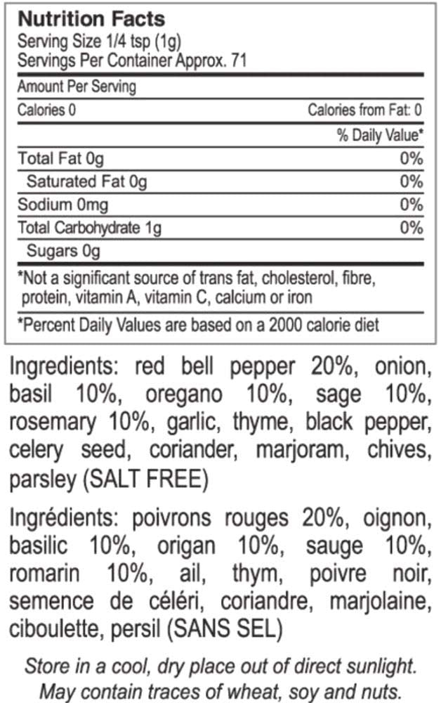 Q: Is The Gourmet Collection Pasta Herb Blend suitable for special diets?A: This seasoning contains no salt, making it a great option for those watching their sodium intake. It's suitable for a range of diets, including Mediterranean and healthy eating plans.