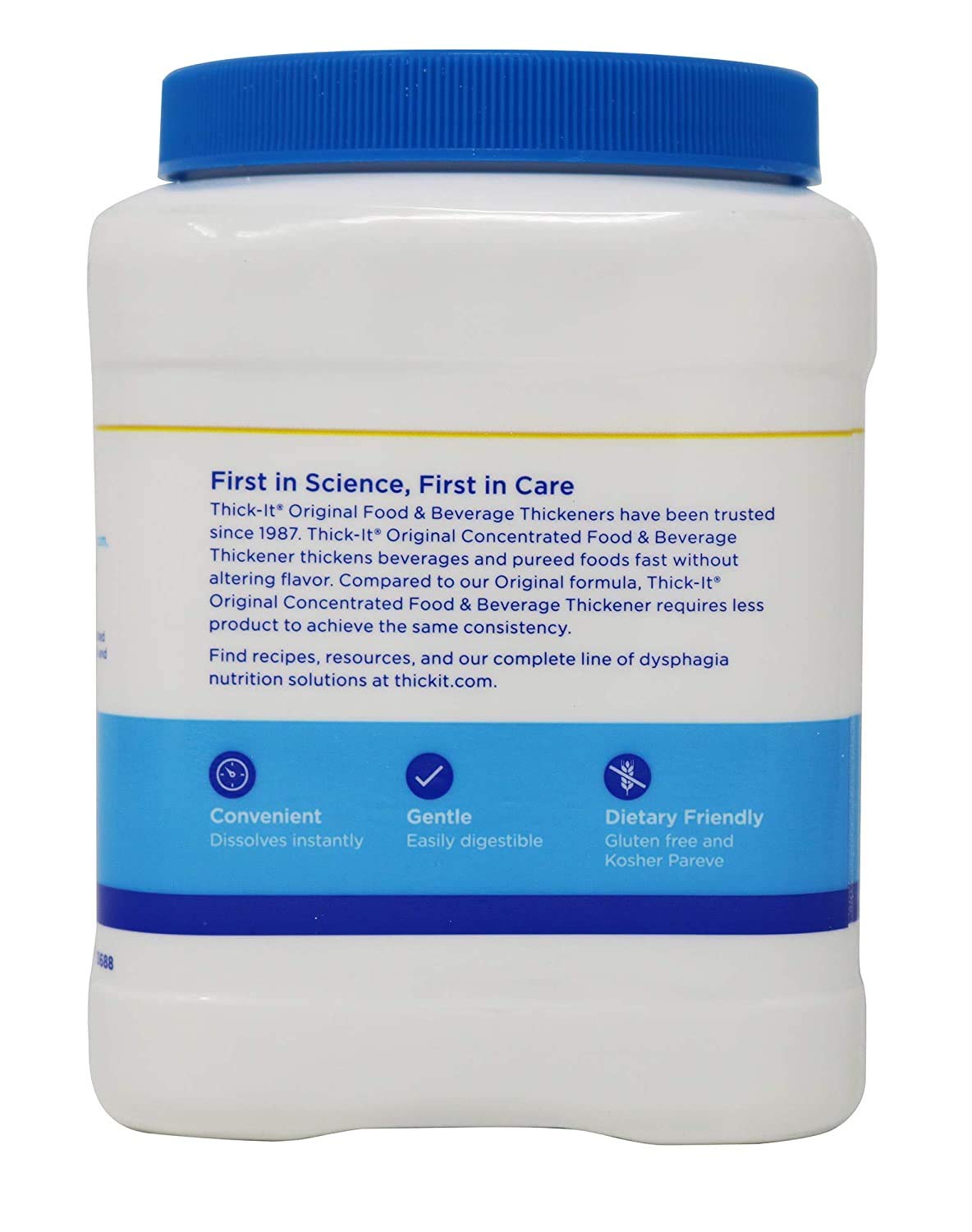 Q: Is Thick-It gluten-free and kosher?A: Yes, Thick-It Concentrated Instant Food and Beverage Thickener is both gluten-free and kosher, accommodating various dietary needs and restrictions, ensuring it is safe for a broad audience.