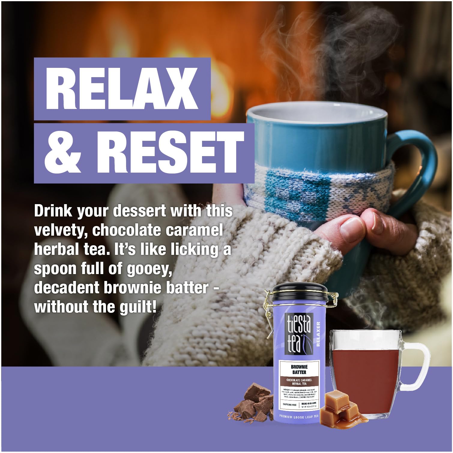 Indulge In The Luxurious Taste Of Our Brownie Batter Herbal Tea, A Decadent Blend That Captures The Rich, Chocolatey Essence Of A Classic Dessert Without The Guilt. This Expertly Crafted Loose Leaf Tea Features A Delightful Mix Of Natural Ingredients, Including Sweet Pineapple, Rich Cocoa Shells, Apple, Caramel Pieces, Chicory Root, Cocoa Nibs, And Sweet Blackberry Leaves. Together, They Create A Smooth, Satisfying Flavor Profile With Notes Of Chocolate And Caramel, Perfectly Balancing Sweetness And Richness. Whether Enjoyed Hot Or Iced, Each Sip Offers A Comforting, Dessert-Like Experience. Packaged In A Convenient Resealable Pouch, This Blend Stays Fresh And Aromatic, Providing 20-25 Cups Of Pure Indulgence. Please Note That This Product Contains Milk And Soy. Plus, By Choosing This Tea, You'Re Supporting The Tiesta Tea Foundation'S Mission To Give Back To Communities Worldwide.